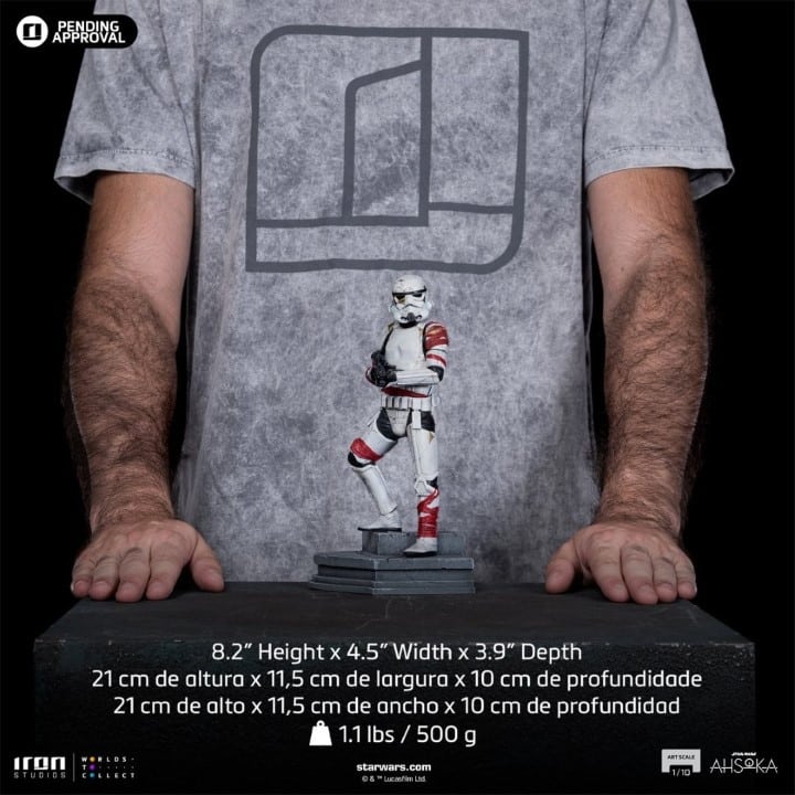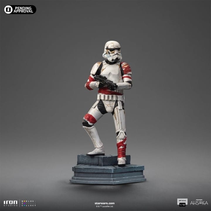 Energized with the dark magick of the witches known as the Great Mothers, the imperial soldier presents himself with an inhuman level of persistence in his mission. Wearing a standard but damaged Stormtrooper armor, full of cracks filled with golden details and strips of red fabric wrapped around it, Thrawn’s death soldier, active in the escape of Peridea, carries his inseparable E-11 medium blaster rifle, the standard gun for imperial Stormtroopers. Iron Studios present the Star Wars: Ahsoka Night Trooper 1:10 Art Scale Limited Edition Statue. Made most of polystone, this statue measures just over 8-inches tall.