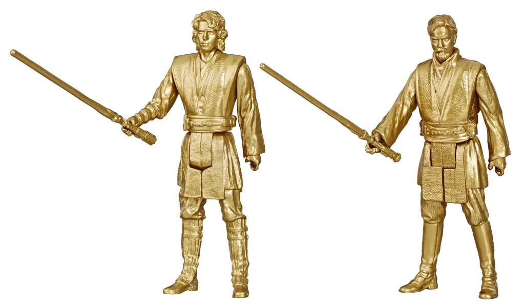 Kids and collectors alike can imagine the biggest battles and missions in the Star Wars Skywalker saga with figures from Star Wars Skywalker Saga collection! Commemorating the Star Wars Skywalker Saga, this series of figures includes iconic characters from the original and prequel trilogies in action figure 2-packs. Each figure has been treated with a gold finish to stand out in any Star Wars fan?s collection! (Each sold separately. Subject to availability.)