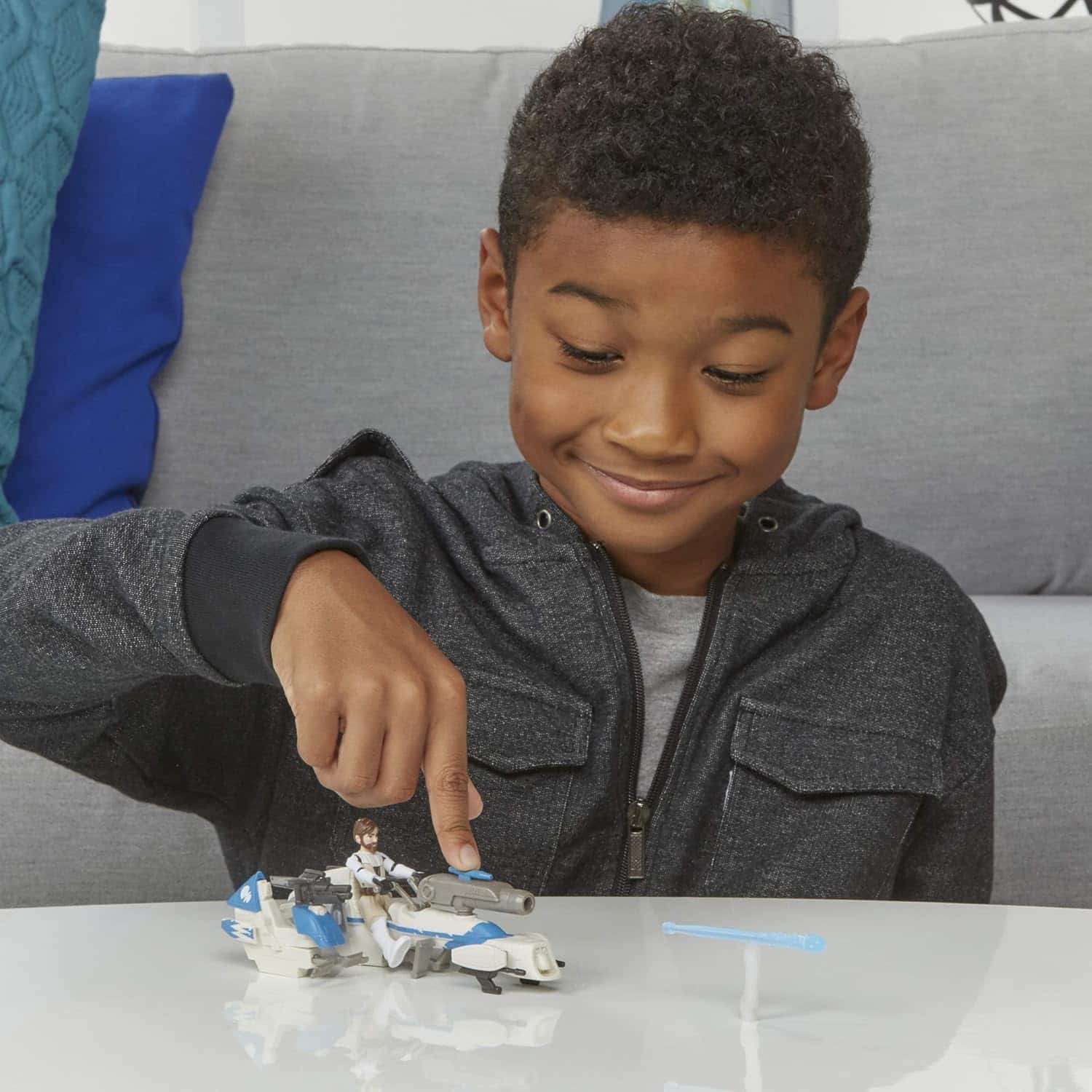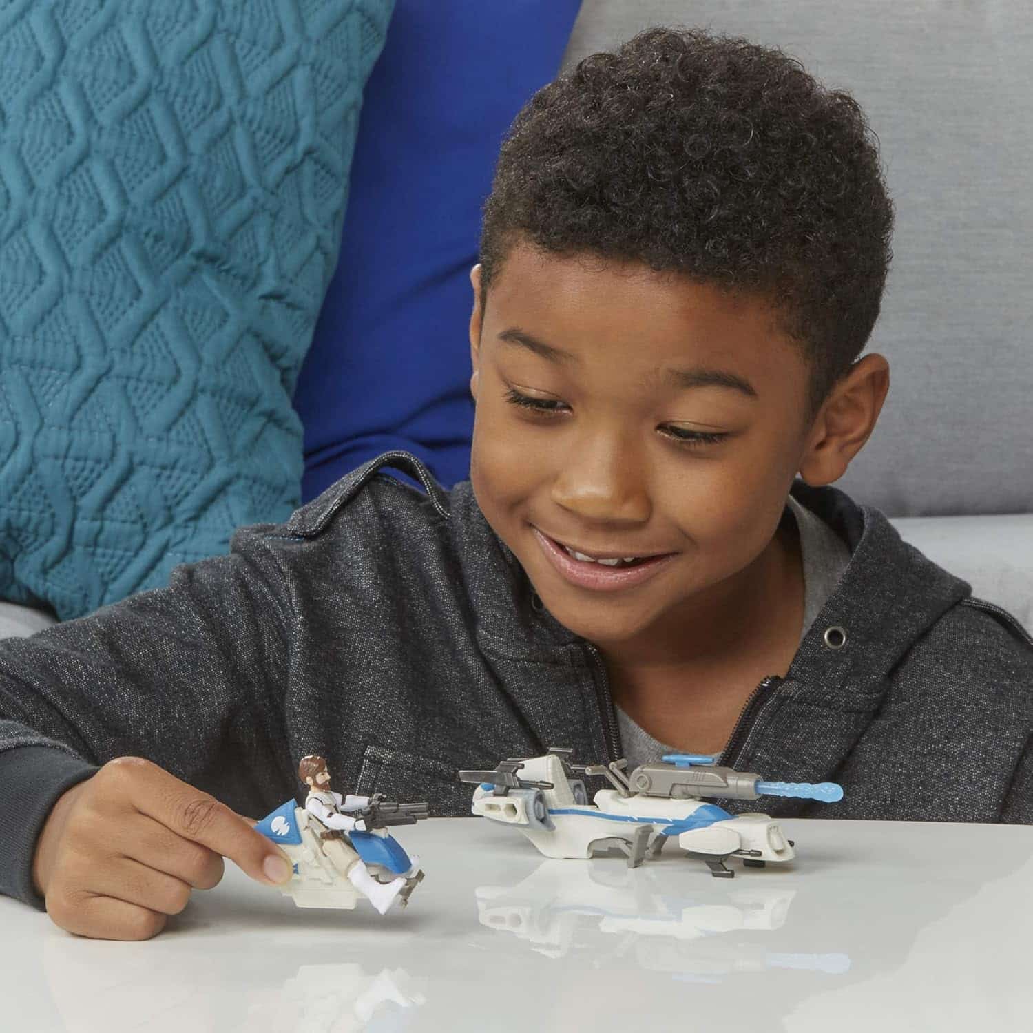 - JEDI SPEEDER VERFOLGUNGSJAGD: Jungs und Mädchen ab 4 Jahren werden es lieben, mit der Obi-Wan Kenobi Jedi Speeder mit abnehmbarem Beiwagen und Projektilwerfer Verfolgungsjagd Figur und dem Fahrzeug mutige Speederbike-Verfolgungsjagden nachzuspielen
