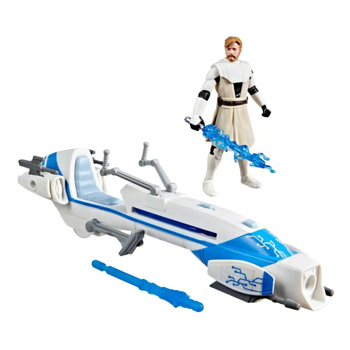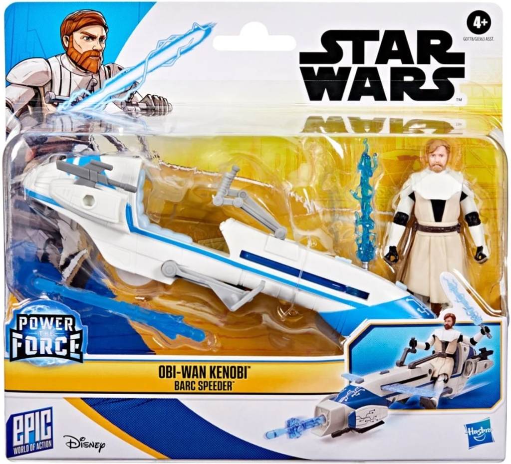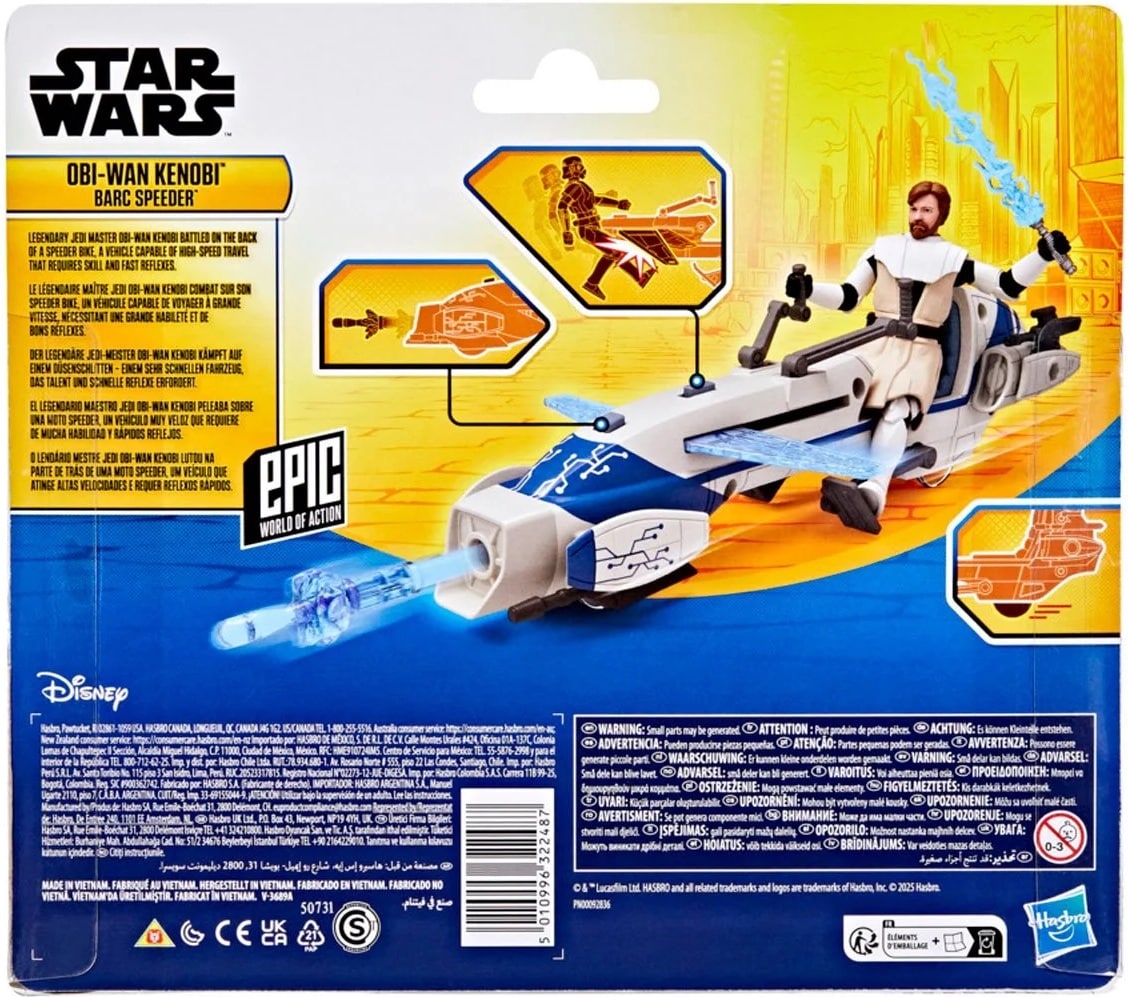 Imagine racing through the galaxy with the Star Wars Epic World of Action Obi-Wan Kenobi & BARC Speeder Bike. This Obi-Wan Kenobi action figure easily fits on the included BARC speeder bike, featuring adjustable handlebars and footholds. Kids can imagine taking down galactic enemies with the projectile launcher and the pop-out blade feature of the BARC speeder. Standing at 4 inches tall (10 cm) and featuring 9 points of articulation, this action figure for kids is the perfect addition to your little fan’s collection. Look for even more figures and vehicles to collect across Hasbro’s Epic World of Action, featuring kid-favorite characters and entertainment-inspired design. (Each sold separately. Subject to availability.) Includes: Figure, vehicle, and 2 accessories.
