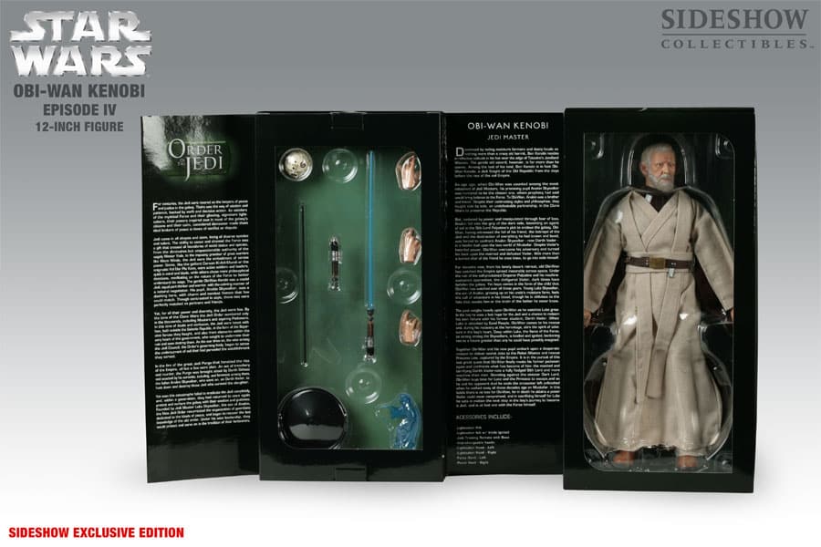 The 12-inch Obi-Wan Kenobi figure includes: