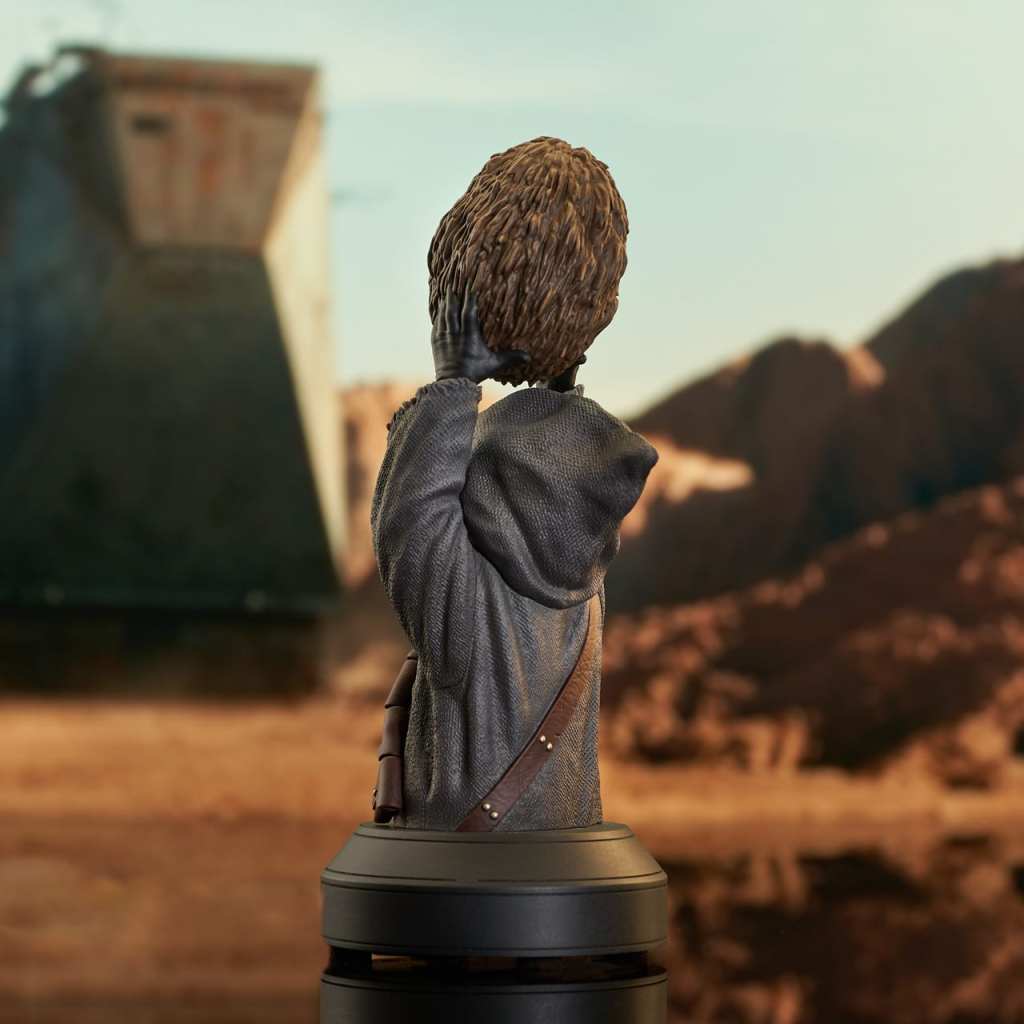 A Gentle Giant LTD release! He has defeated the Mudhorn! One of Din Djarin’s business partners on the planet of Arvala-7, this Jawa is celebrating the capture of a Mudhorn egg, considered a delicacy by its people. Measuring approximately 6 inches tall, this 1/6 scale resin mini-bust features detailed sculpting and paint applications, and is based on his appearance in The Mandalorian Season 1. Plus, it features light-up eyes! Limited to only 3000 pieces, it includes a numbered certificate of authenticity and comes in a full-color box.