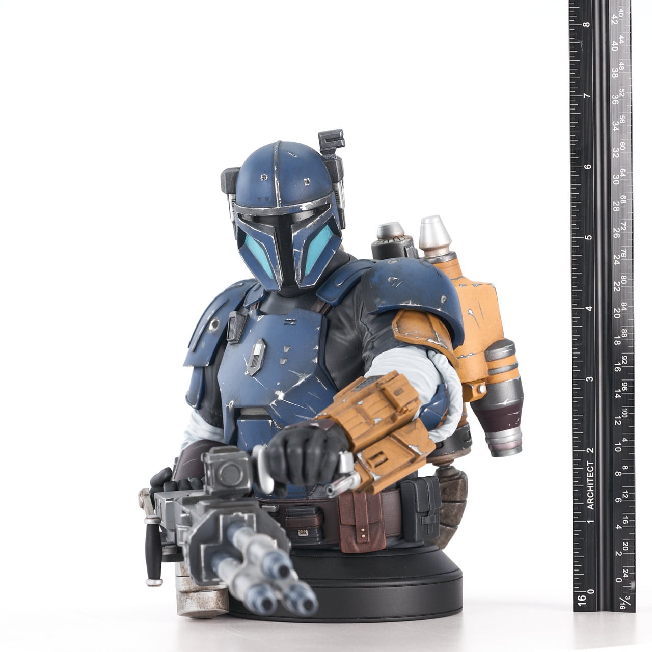 A Gentle Giant Ltd. release! All hail the House of Vizsla! The descendant of many great leaders, Paz Vizsla is a heavily armed, heavily armored Mandalorian who once did Din Djarin a great service. Standing approximately 6 inches tall atop a pedestal base, with his massive gun leveled, Paz Vizsla features detailed sculpting and paint applications. Limited to only 3000 pieces, it comes packaged with a numbered certificate of authenticity in a full-color box.