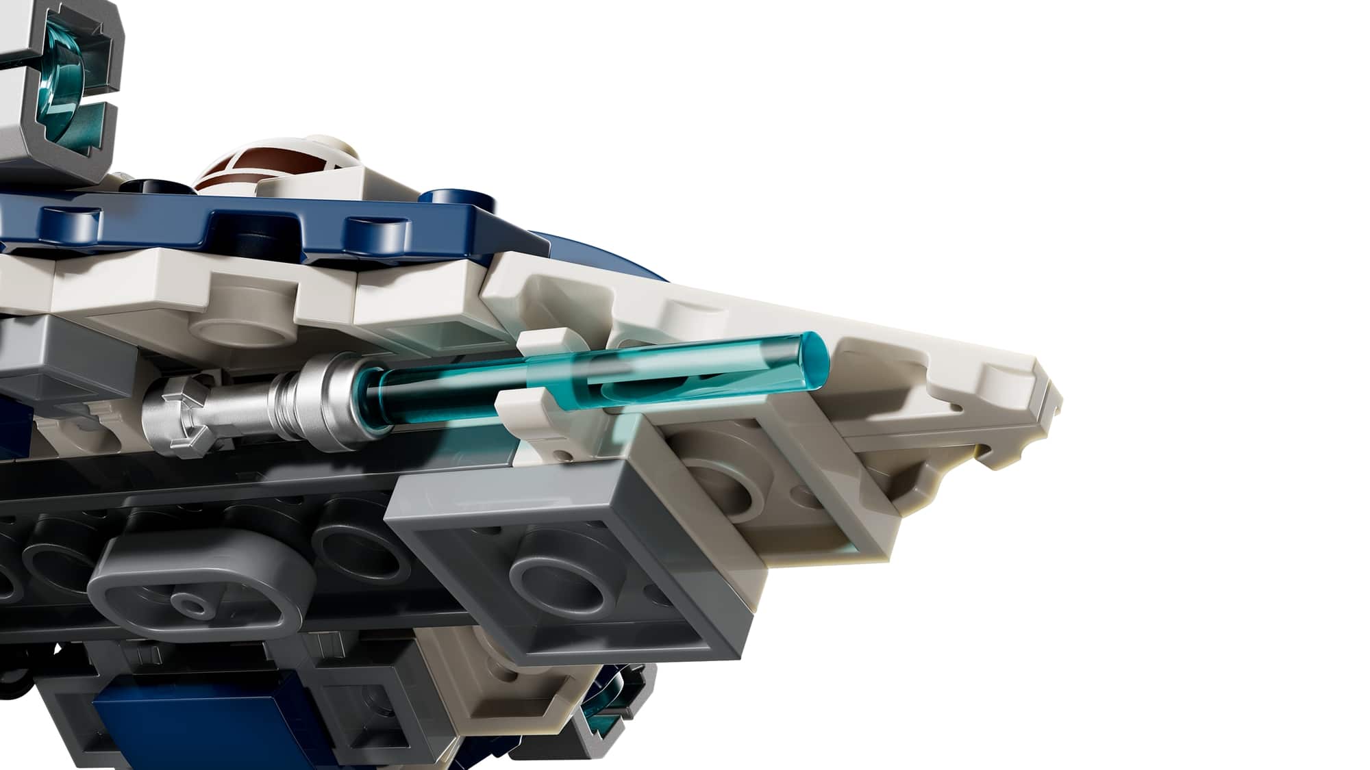Dieses Fantasy-Bauset beinhaltet auch die LEGO Minifigur Plo Koon mit einem blauen Lichtschwert, das man unten am Microfighter festklemmen kann. Der Kopf von R7-D4 kann vor dem Cockpit auf den Rumpf gesteckt werden, damit es so aussieht, als würde der treue Star Wars Droide Plo Koon auf seine Missionen begleiten.