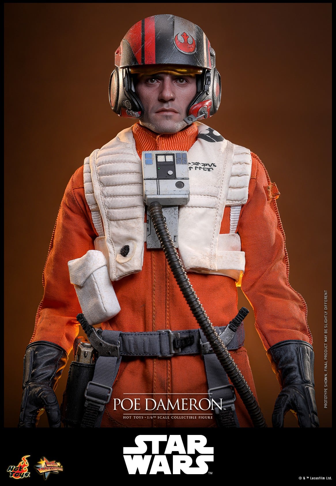 This meticulously crafted figure features a movie-accurate head sculpt with separate rolling eyeballs and detailed hair sculpture, complemented with a finely tailored Resistance X-Wing pilot suit with accurate details and weathering effects, as well as a removable helmet for additional display options. The figure also includes accessories and weapons to enhance display options, such as a blaster pistol, gloves, and a life-support unit. Additionally, it comes with a figure stand.