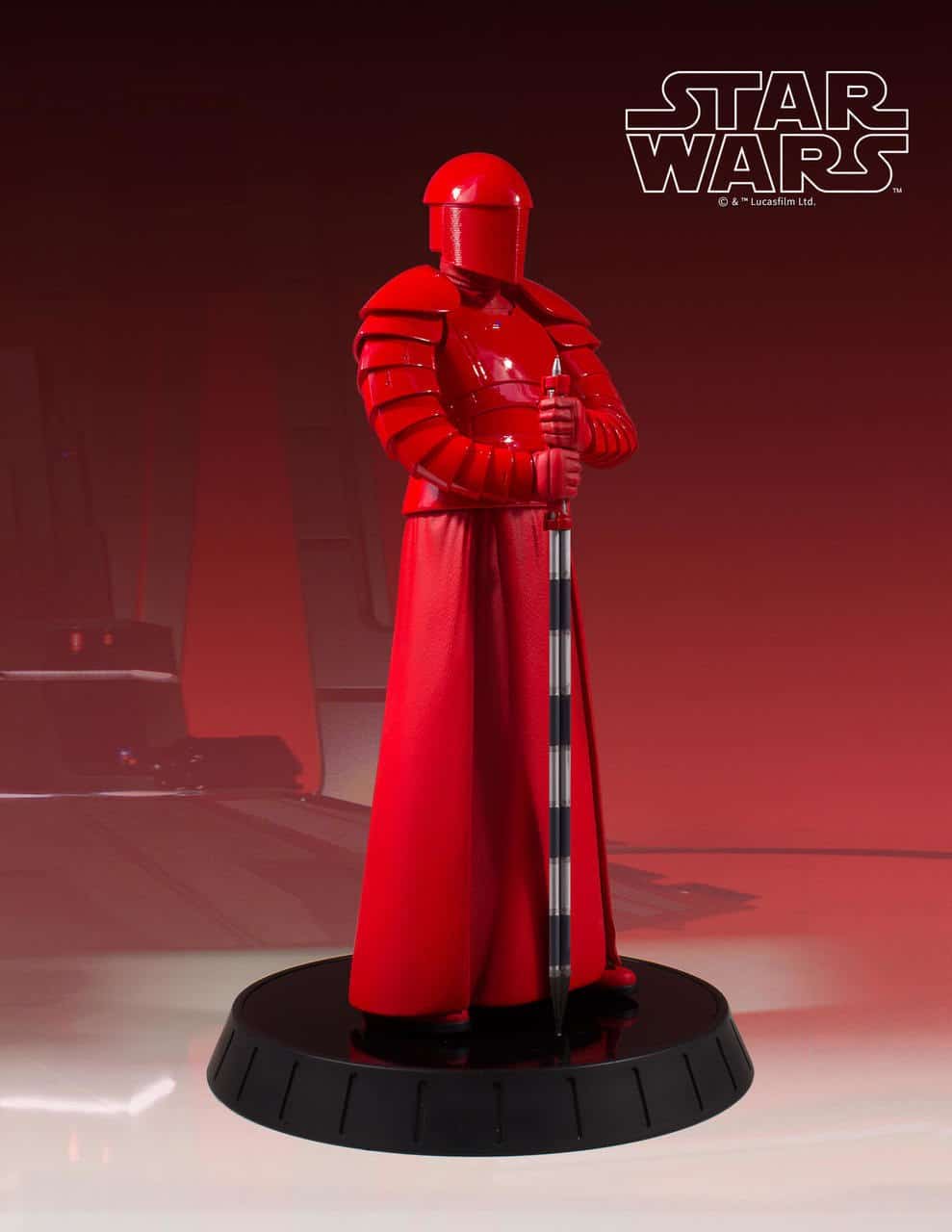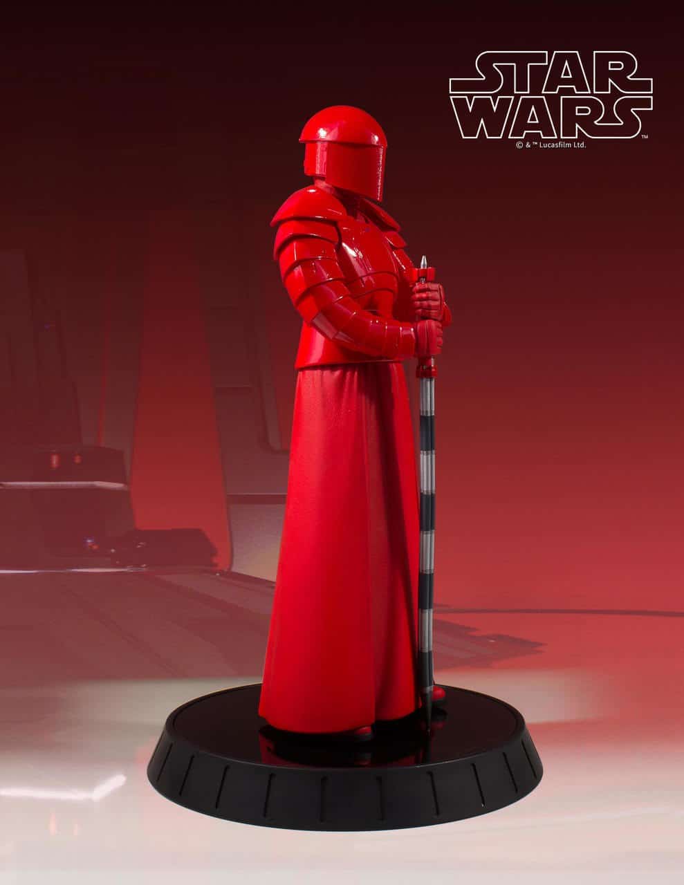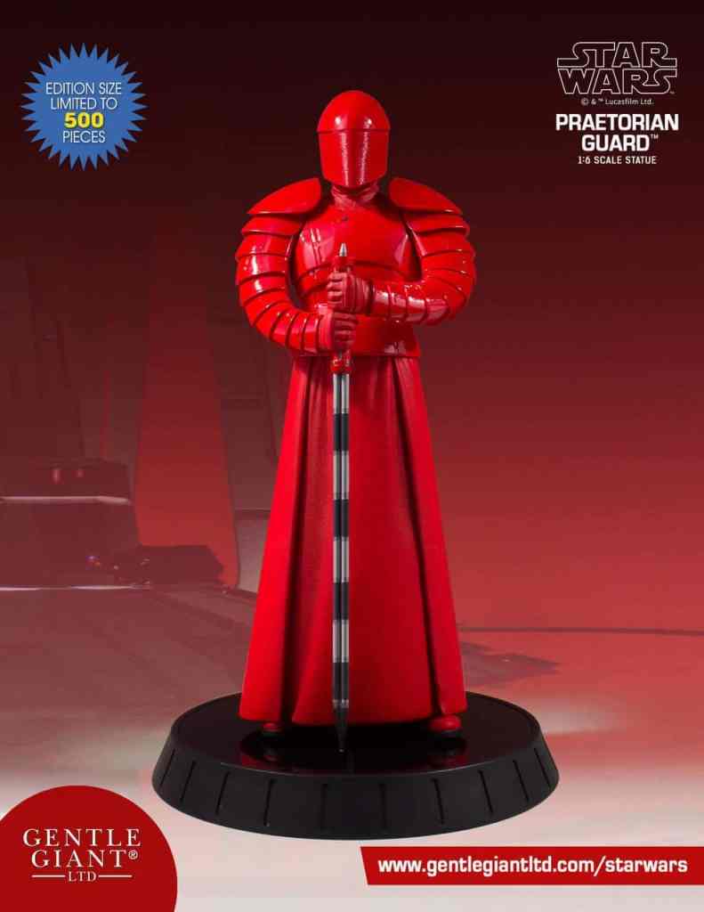 Designed and sculpted using the original film costumes and on-set scan data, Gentle Giant’s 1/6th scale Praetorian Guard is as authentic as you can get. Every detail of the character and costume, every armor segment, every fold, every ridge of the mesh on the helmet have been captured in this high-quality, limited edition, hand-painted 1/6th scale resin statue from Star Wars: The Last Jedi. Consistent with Gentle Giant’s long running line of 1/6th scale statues, this piece is packaged with a hand-numbered Certificate of Authenticity and complimented by a gloss black display base.