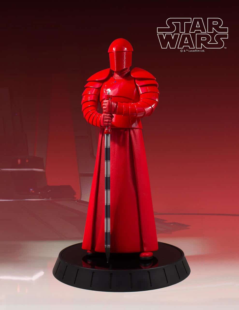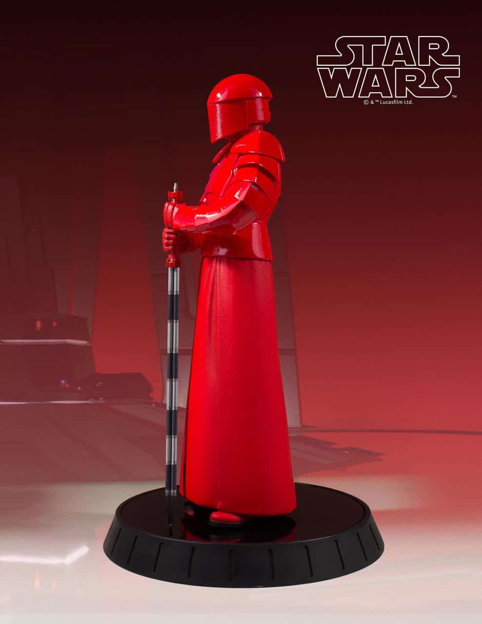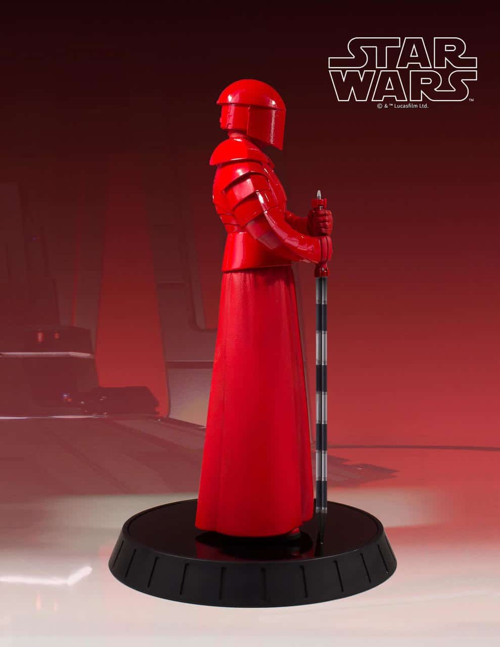 Designed and sculpted using the original film costumes and on-set scan data, Gentle Giant’s 1/6th scale Praetorian Guard is as authentic as you can get. Every detail of the character and costume, every armor segment, every fold, every ridge of the mesh on the helmet have been captured in this high-quality, limited edition, hand-painted 1/6th scale resin statue from Star Wars: The Last Jedi. Consistent with Gentle Giant’s long running line of 1/6th scale statues, this piece is packaged with a hand-numbered Certificate of Authenticity and complimented by a gloss black display base.