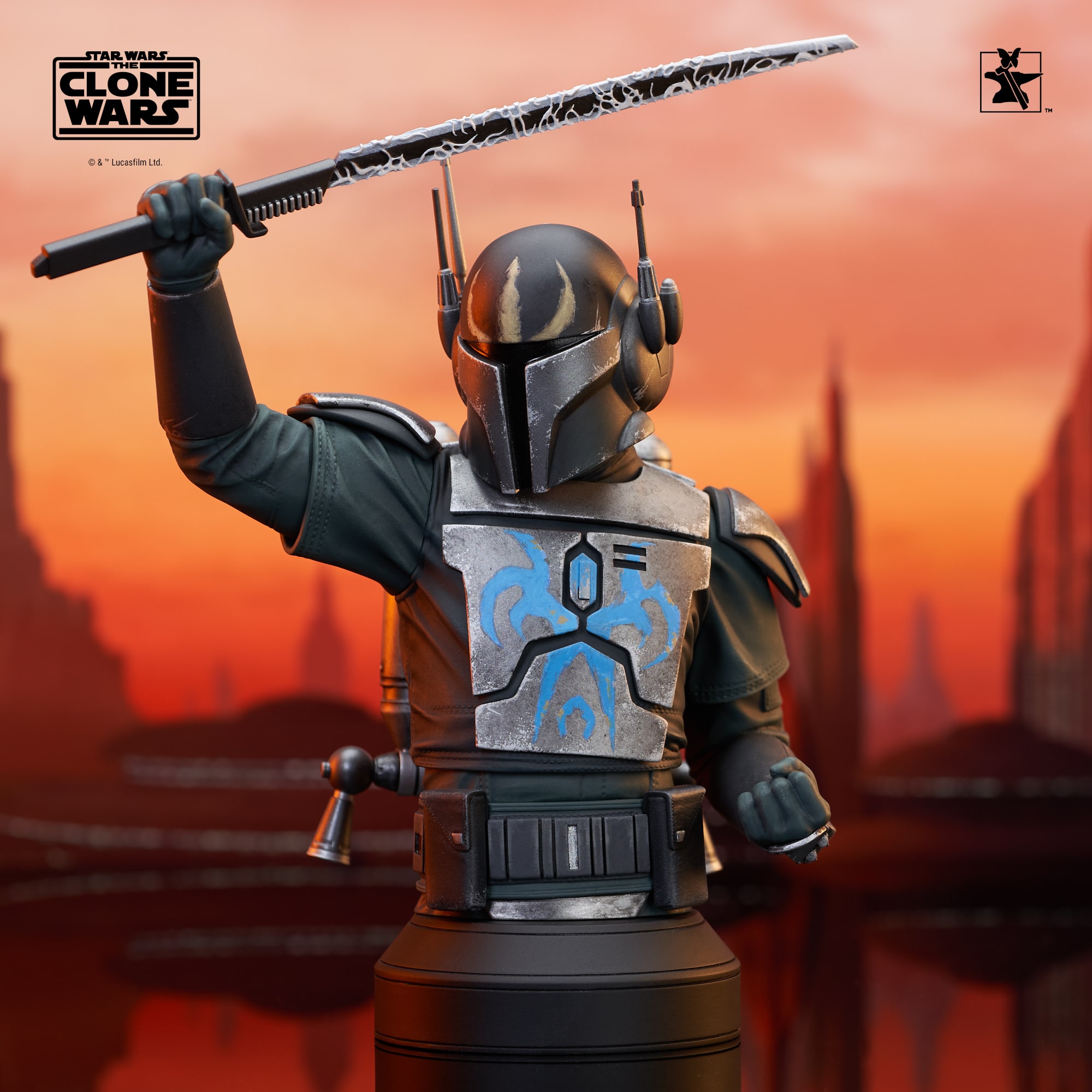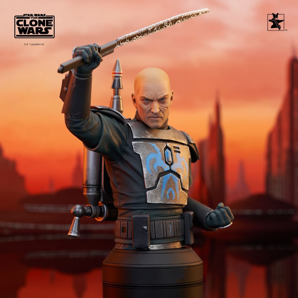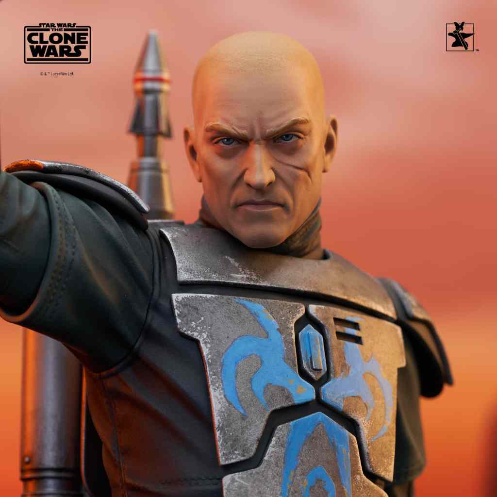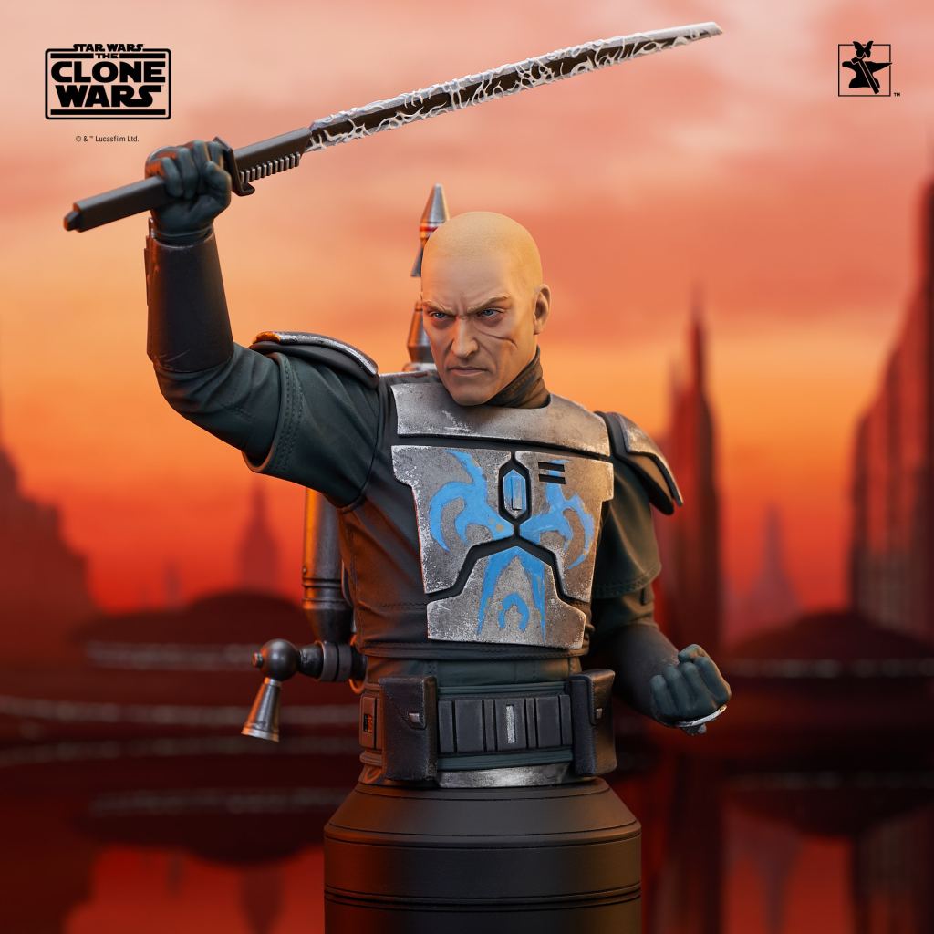 A Gentle Giant LTD release! The leader of the Death Watch has arrived! Pre Vizsla, governor of the moon Concordia and secret leader of the famous Mandalorian commando group, is now the latest 1/6 scale mini-bust from Gentle Giant LTD! Raising the darksaber and measuring approximately 7 inches tall, this exclusive mini-bust features interchangeable helmeted and unhelmeted heads. Limited to only 750 pieces, it comes packaged in a full-color box with a numbered certificate of authenticity.