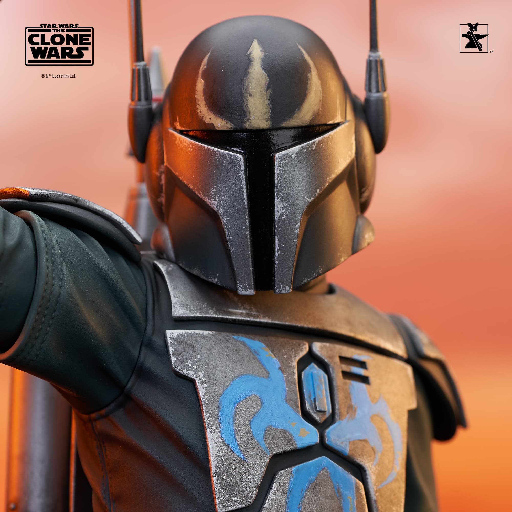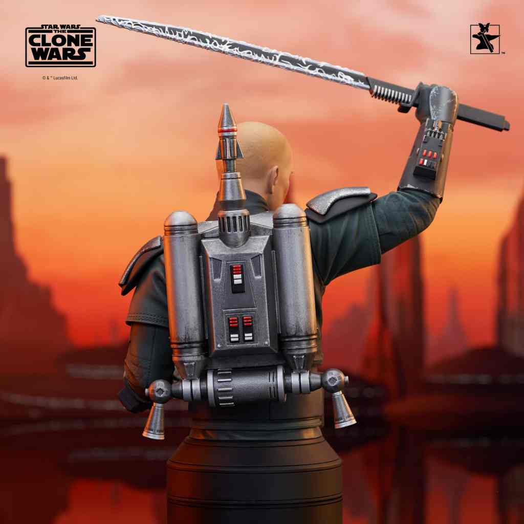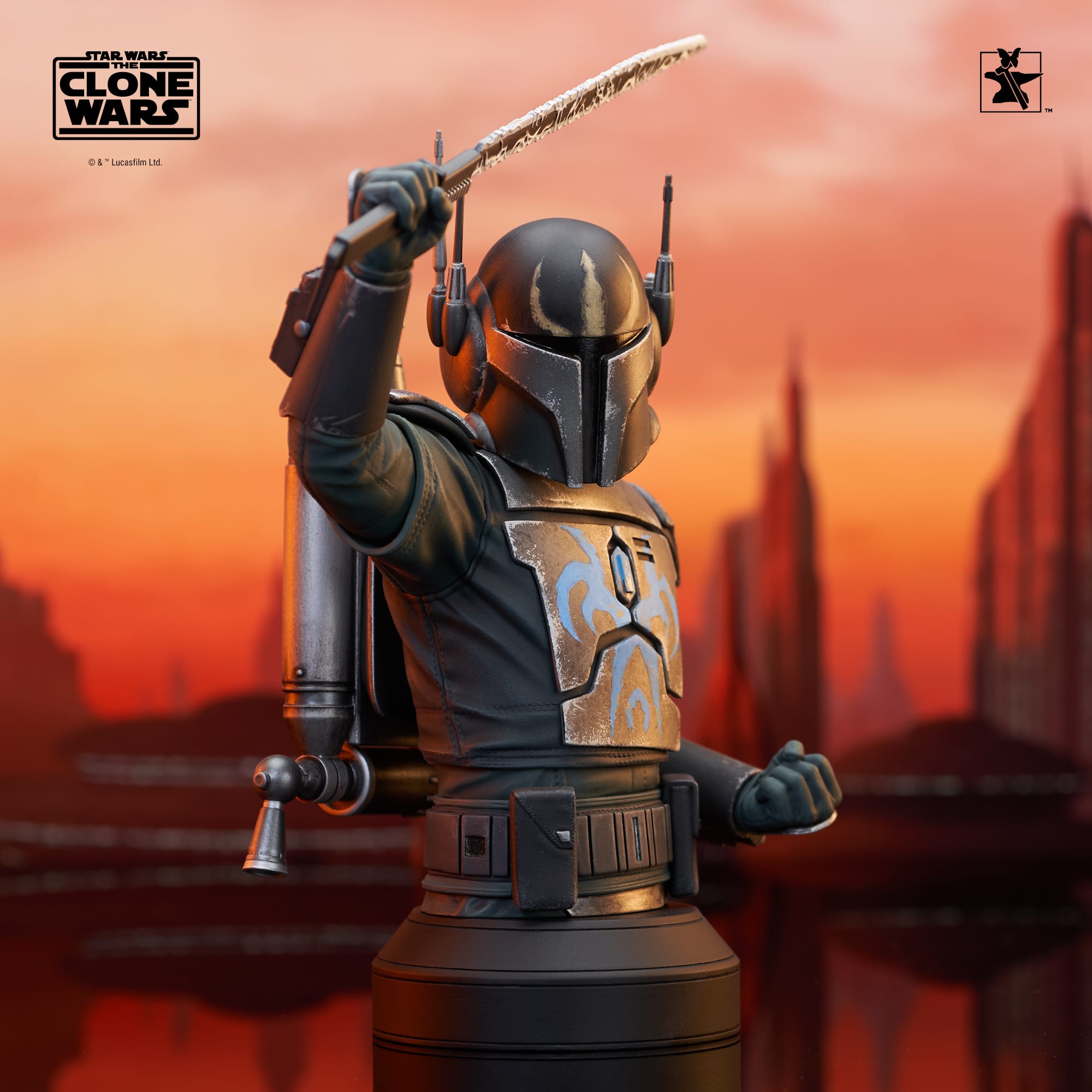 A Gentle Giant LTD release! The leader of the Death Watch has arrived! Pre Vizsla, governor of the moon Concordia and secret leader of the famous Mandalorian commando group, is now the latest 1/6 scale mini-bust from Gentle Giant LTD! Raising the darksaber and measuring approximately 7 inches tall, this exclusive mini-bust features interchangeable helmeted and unhelmeted heads. Limited to only 750 pieces, it comes packaged in a full-color box with a numbered certificate of authenticity.