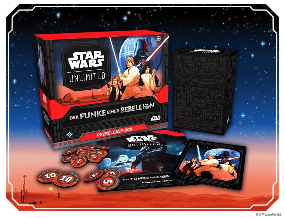Eine Star Wars: Unlimited – Der Funke einer Rebellion Prerelease-Box enthält: