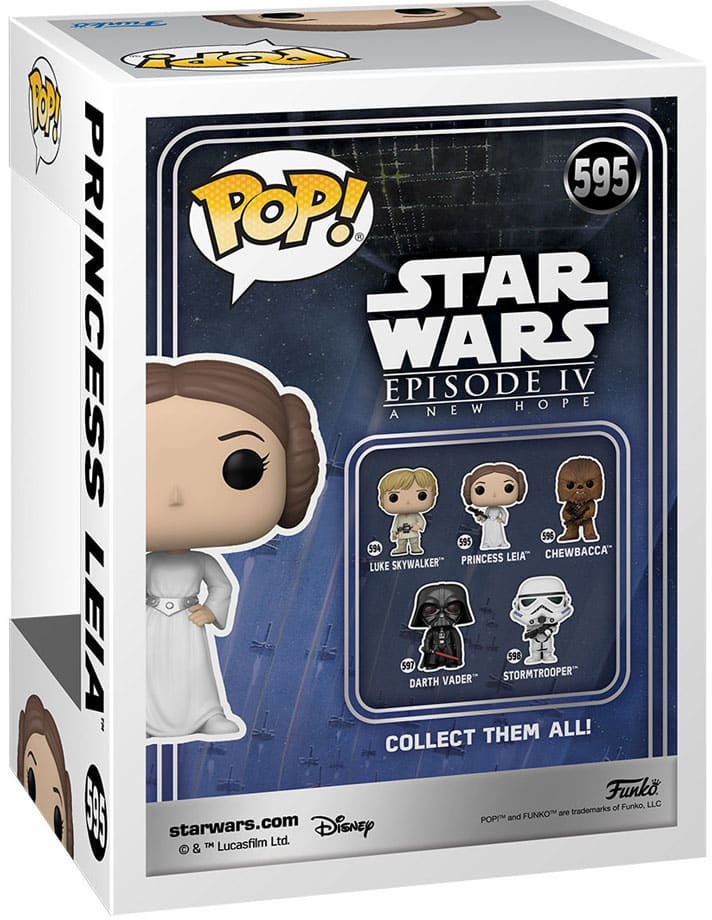 Celebrate the most stellar fandom of all with Pop! Princess Leia™. This royal rebel has her blaster at the ready and can’t wait to be reunited with her friends in your Star Wars™: Episode IV A New Hope collection. Vinyl bobblehead is approximately 4.25-inches tall.