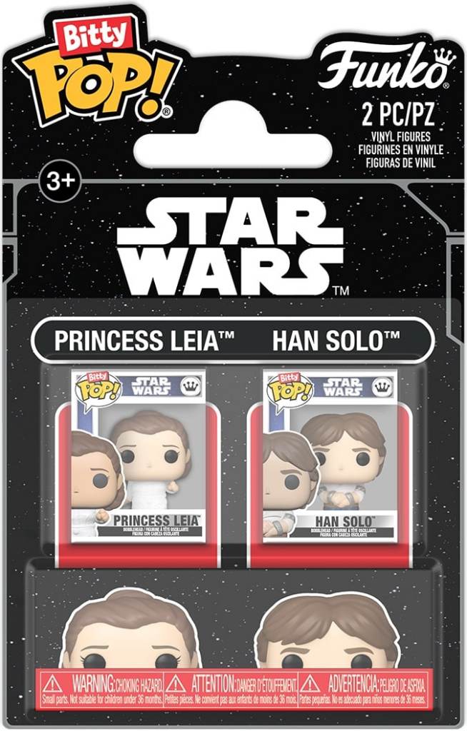 Die Welt der POP! Figuren wird größer – und gleichzeitig kleiner – mit den neuen Bitty POP! Collectibles! Erweitere deine Star Wars™ Sammlung mit diesem 2er-Pack, das Bitty POP! Prinzessin Leia™ und Bitty POP! Han Solo™ enthält. Die Bitty POP! Figuren kommen in stabilen Acrylboxen mit abnehmbaren Bodenplatten. Diese dienen gleichzeitig als Standfüße, auf denen die kleinen Vinylfiguren befestigt sind. Jede Figur ist etwa 2,3 cm groß.