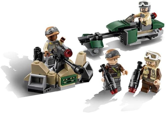 - Enthält ein Speeder-Bike mit Blaster-Halterung und Platz für eine Minifigur sowie einen Schützengraben mit frei drehbarer Laserkanone samt Shooter und zusätzlicher Munition.
