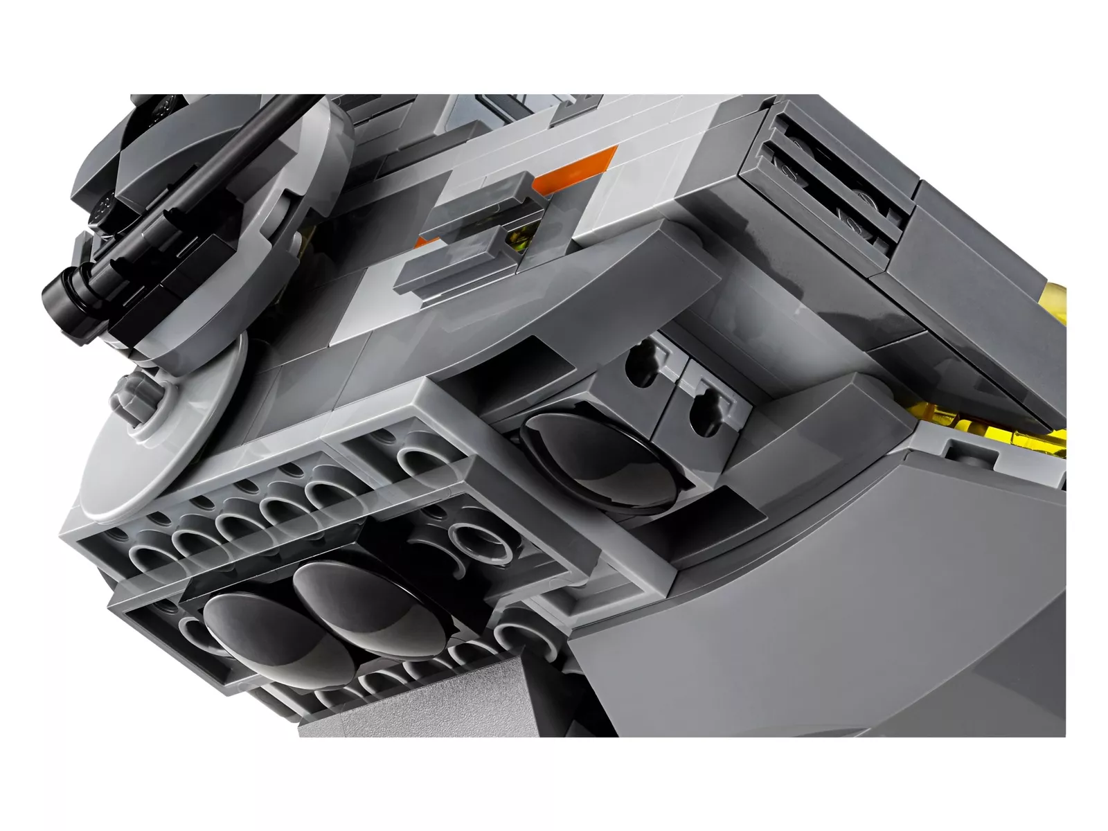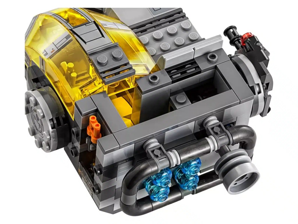 - Verfügt über ein Cockpit mit abnehmbarem Kabinendach für 2 Minifiguren, abnehmbare Platten, hinter denen der Heckladeraum und das Staufach für die Ausrüstung zum Vorschein kommen, einen verstellbaren seitlichen Shooter sowie zwei federunterstützte Shooter.
