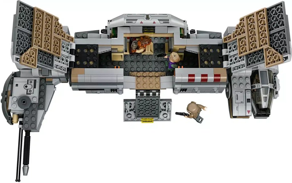 - Verfügt über aufklappbare Dachluken und ein aufklappbares Cockpit, eine absenkbare Rampe, Platz für 4 Minifiguren im Inneren sowie federunterstützte Doppel-Shooter.