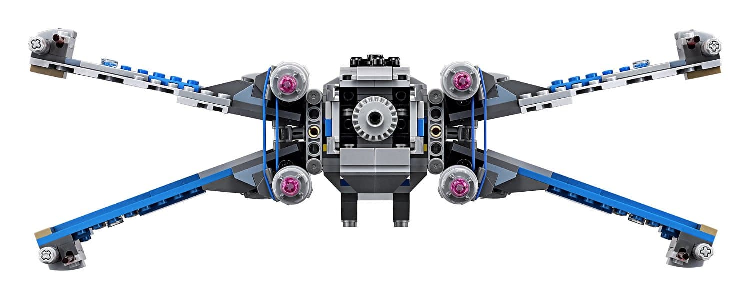 • Der Resistance X-Wing Fighter verfügt über ausklappbare Flügel und ein aufklappbares Cockpit, 4 federunterstützte Shooter, ein einklappbares Fahrwerk, einen abnehmbaren Hyperraumantrieb sowie über einen abnehmbaren Astromech-Droid vom Typ BB-8.
