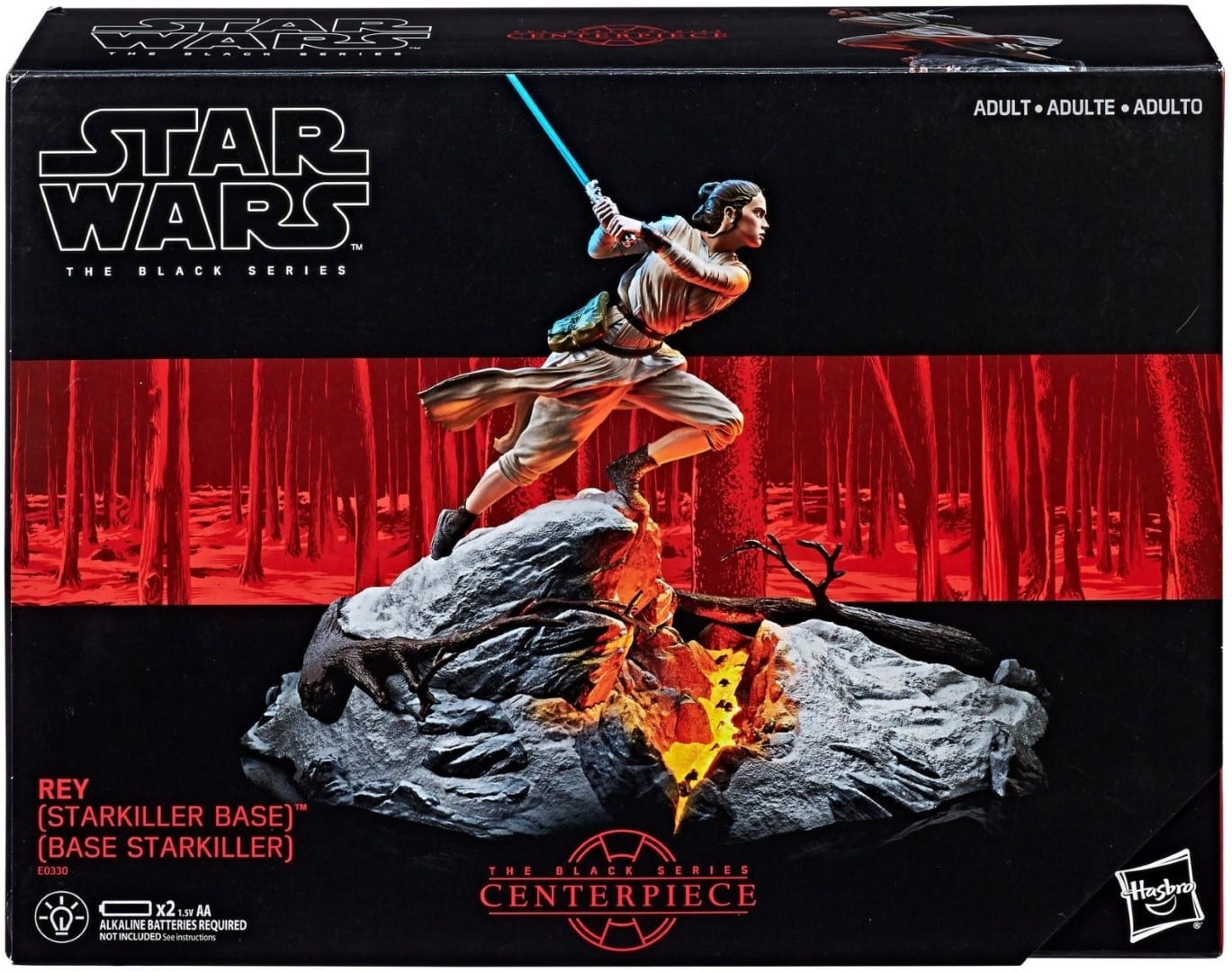 Imagine Rey battling Kylo Ren in the icy forests of Starkiller Base in Star Wars: The Force Awakens with this Star Wars The Black Series Centerpiece Rey (Starkiller), featuring Rey wielding her iconic lightsaber. With a premium base featuring lights that invite building out the iconic scene with more figures, vehicles, and accessories, Star Wars The Black Series Centerpiece Rey (Starkiller Base) truly serves as the centerpiece of any fans treasured display.