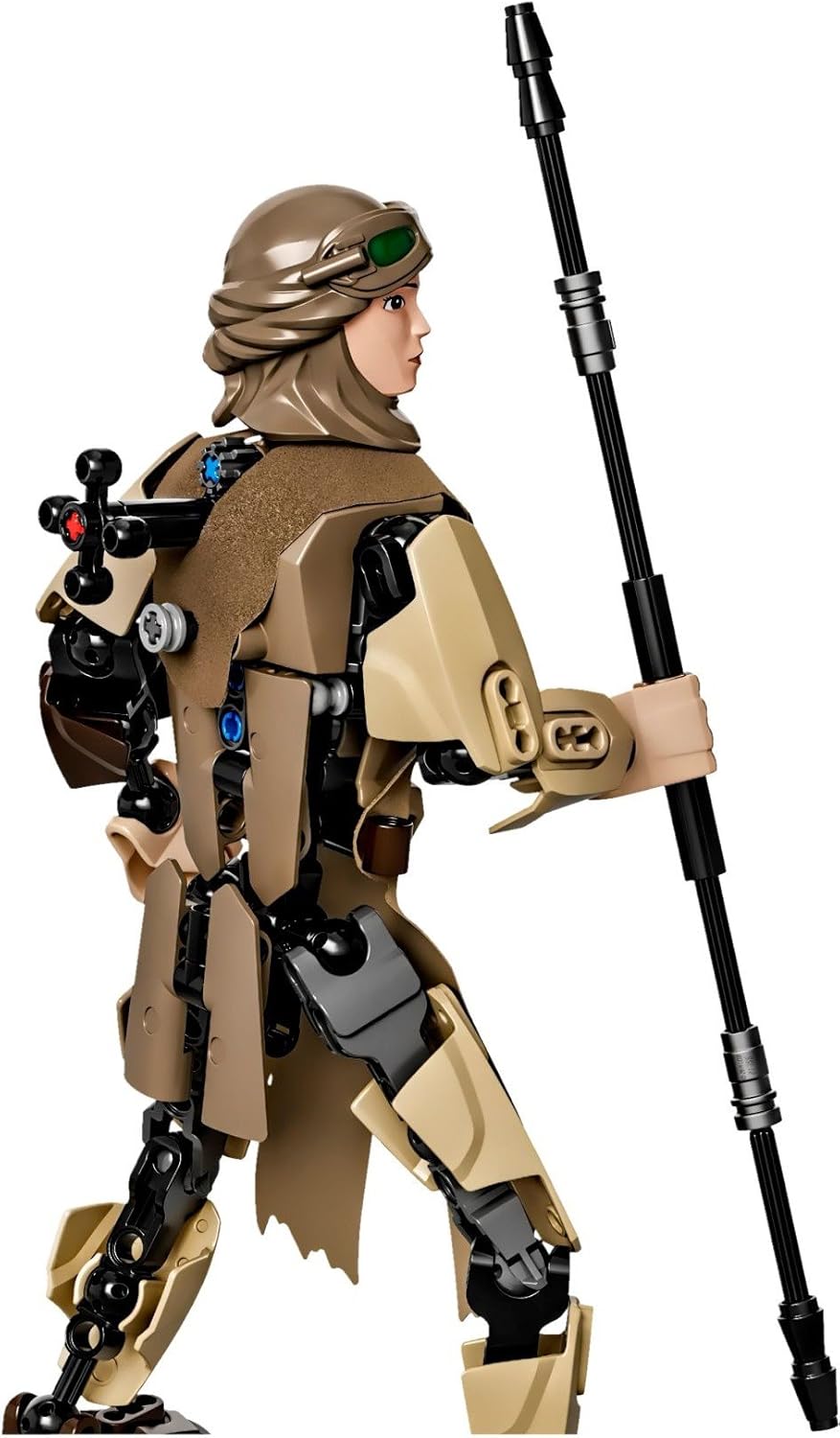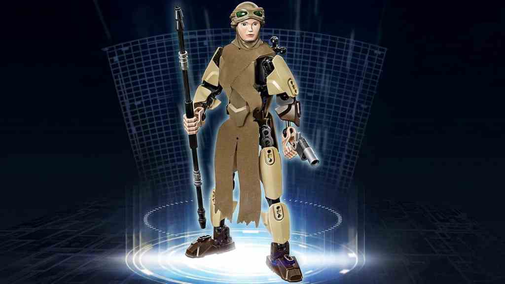 - Diese baubare und äußerst bewegliche Rey-Figur trägt eine Wüstenuniform aus echtem Stoff, ist mit Stab und Pistole ausgerüstet und verfügt über eine Funktion zum Schwingen des Arms, die mit einem Rad aktiviert wird.