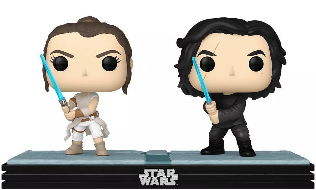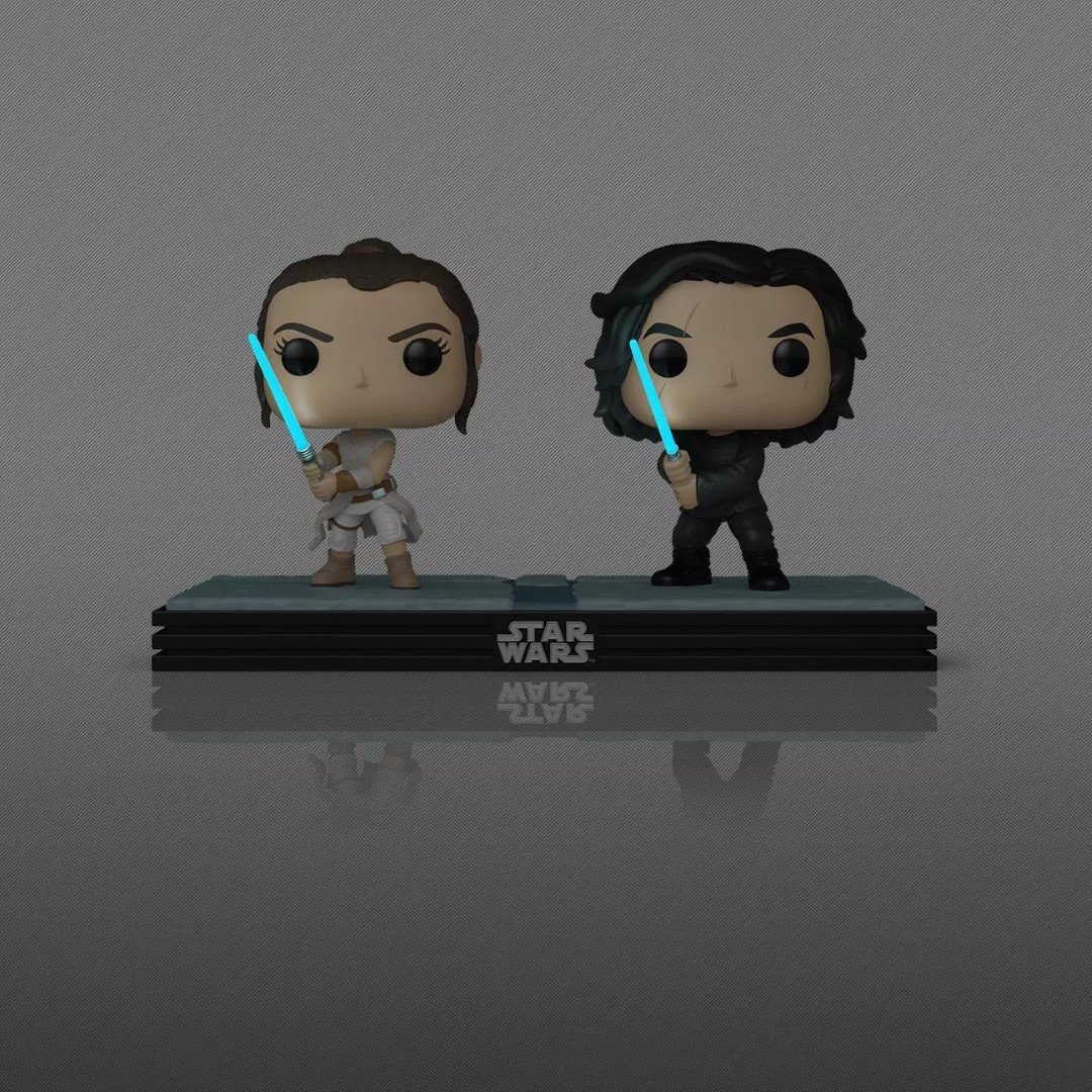 Celebrate the most stellar fandom of all with your favorite dyad in the Force™! This exclusive POP! Moment features POP! Rey™ and POP! Kylo Ren™ standing side by side as they wield glow-in-the-dark Lightsabers™. Expand your Star Wars™ collection by making this duo the next addition to your POP! Movies lineup. Vinyl collectible is approximately 4.5-inches tall.