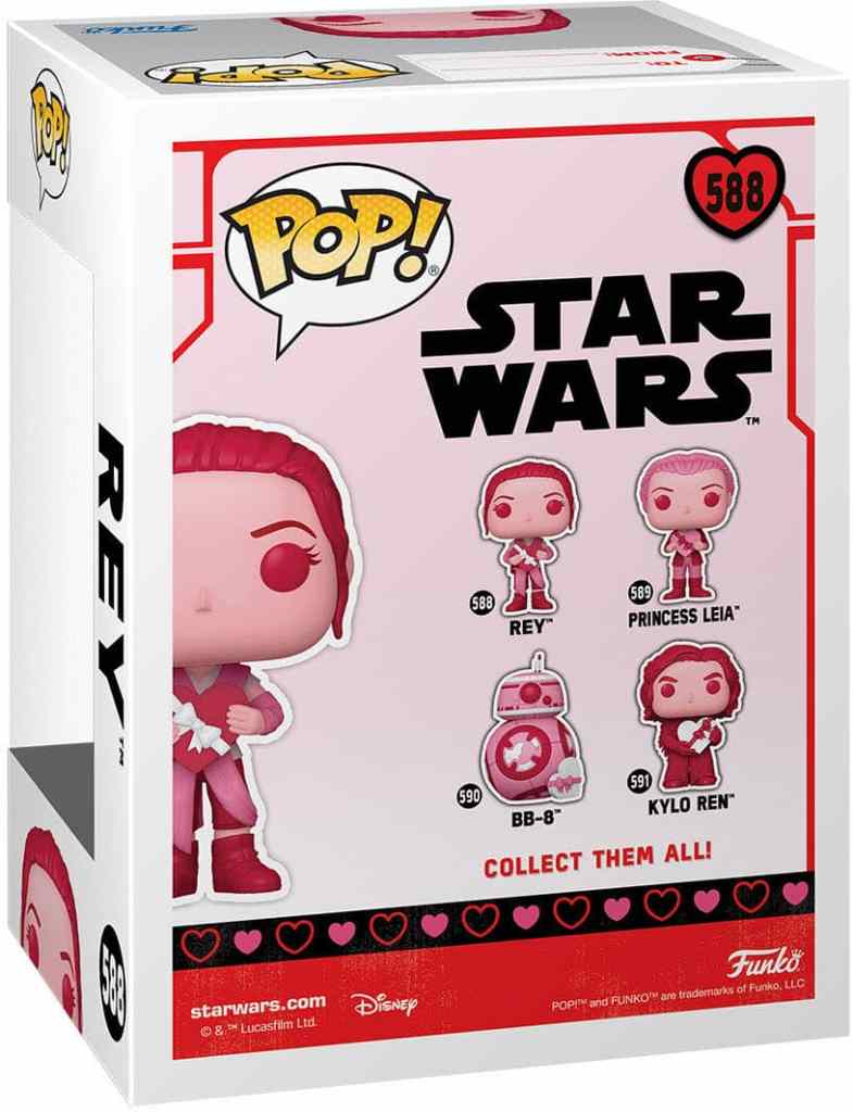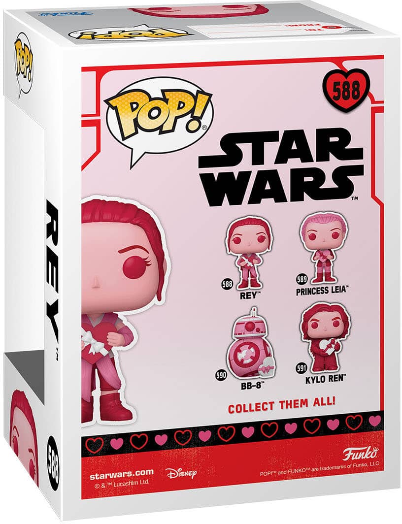 Choose your Valentine with the limited edition Valentine’s Day Pop! Rey™. Her red, pink, and white color scheme makes for a vibrant addition to any Star Wars collection, and there’s a sweet message written at her feet. Vinyl bobblehead is approximately 4.4-inches tall.