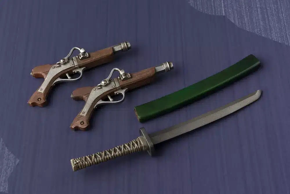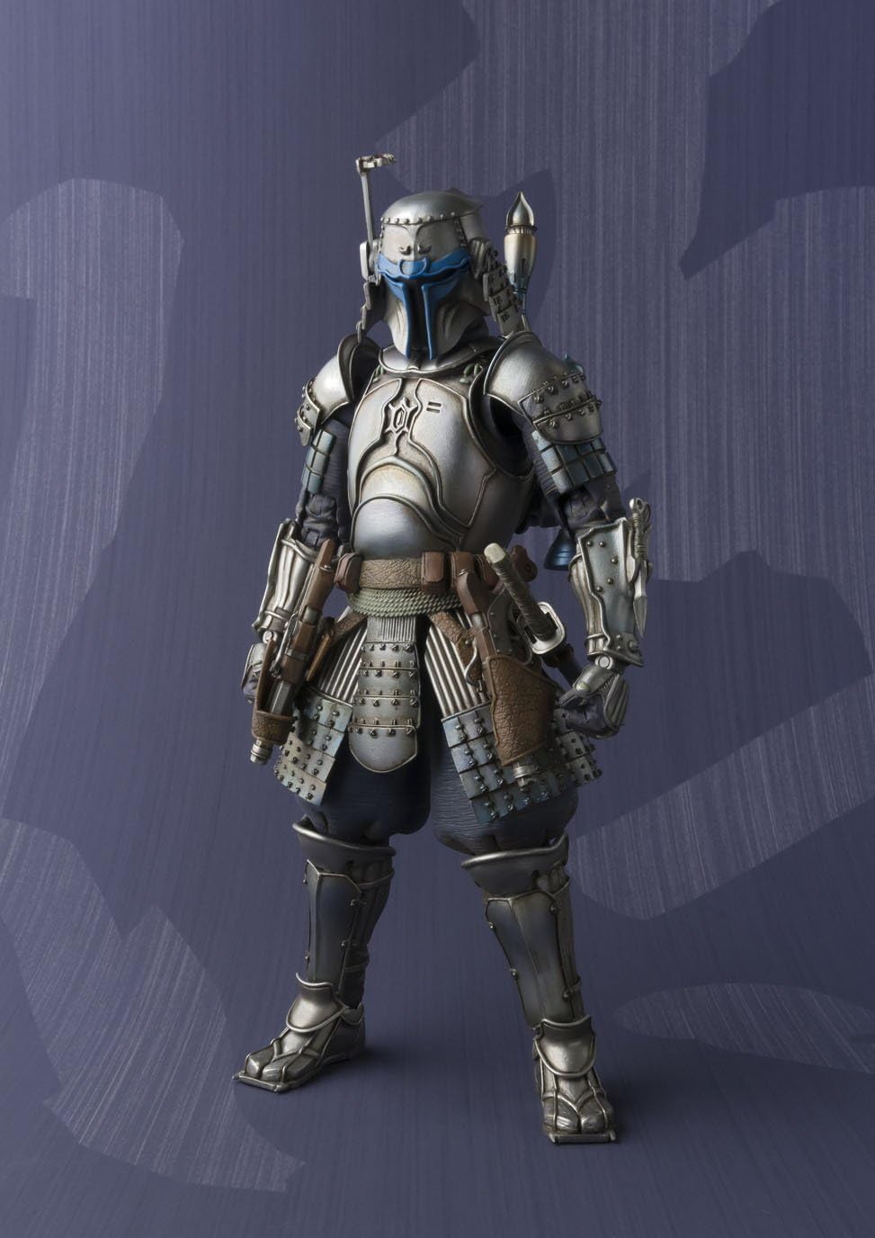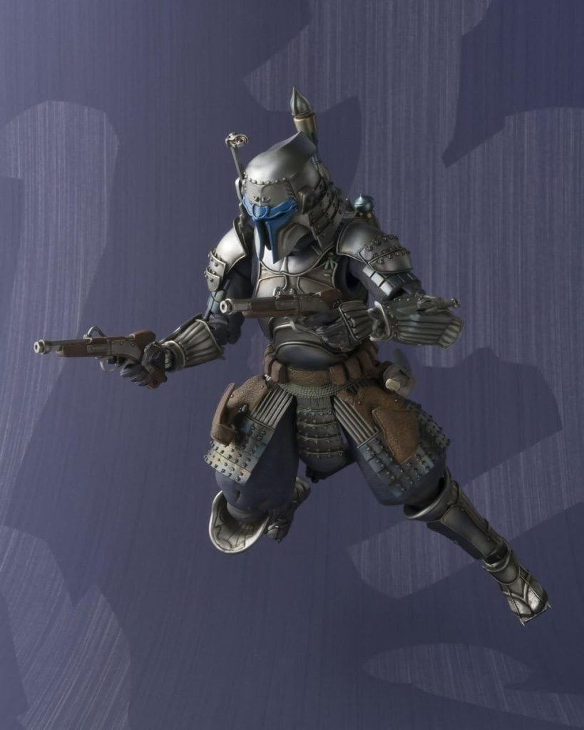 Timed for the upcoming new Star Wars film come three consecutive new releases in the Meisho Movie Realization series! The first is Ronin Jango Fett. Includes his trademark pair of guns, which can be attached to his legs. Includes 8 optional pairs of hands, two guns, and a kunai blade.