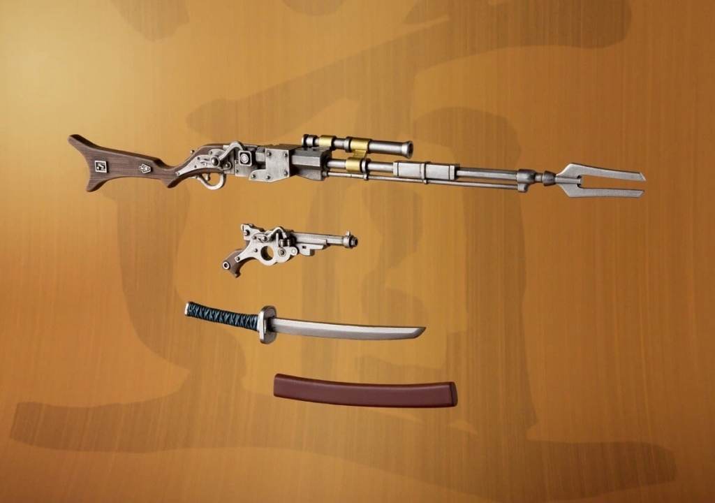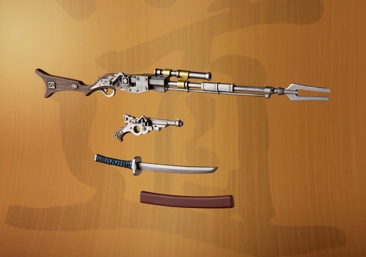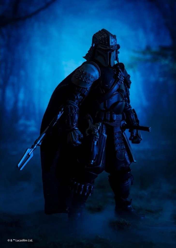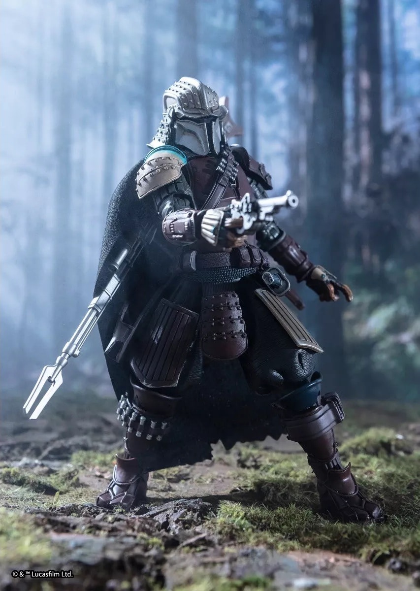 The Mandalorian arrives in the Meisho Movie Realization series in the first armor seen in the Star Wars series The Mandalorian. Styled by Takayuki Takeya and inspired by the motif of a ronin (masterless samurai), this figure includes the first ever cloth cape in the Meisho series. He also includes his characteristic rifle and blaster accessories, as well as a katana sword. With weathering and brushing applied to his armor plating this figure brings a new level of detail to the line.
