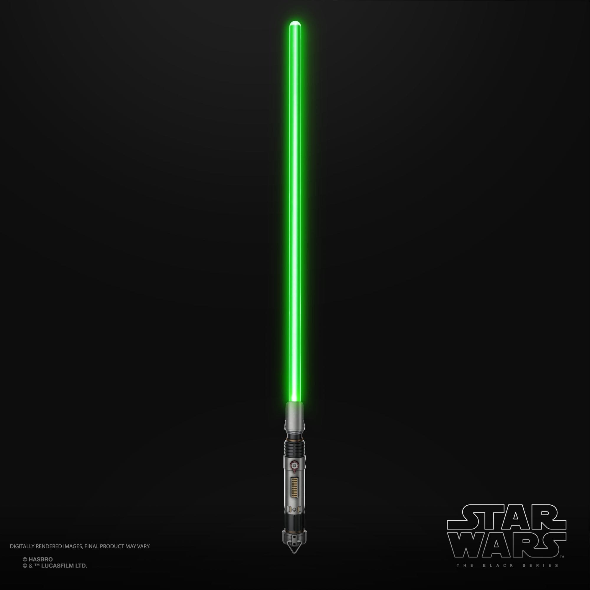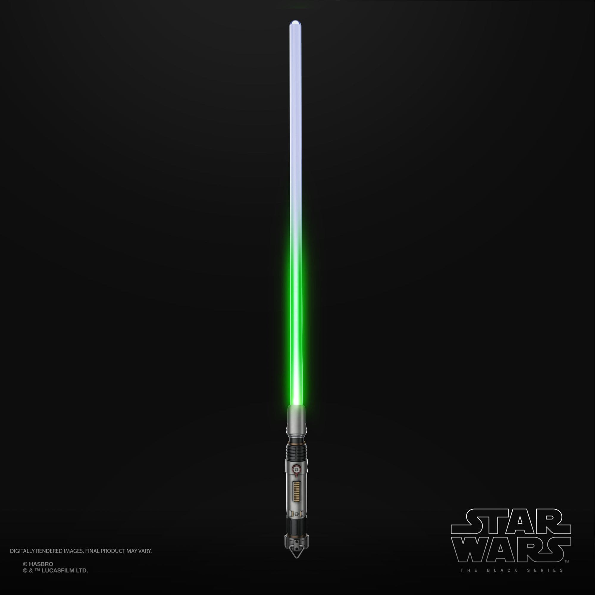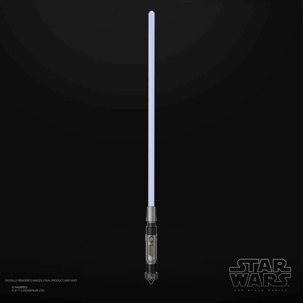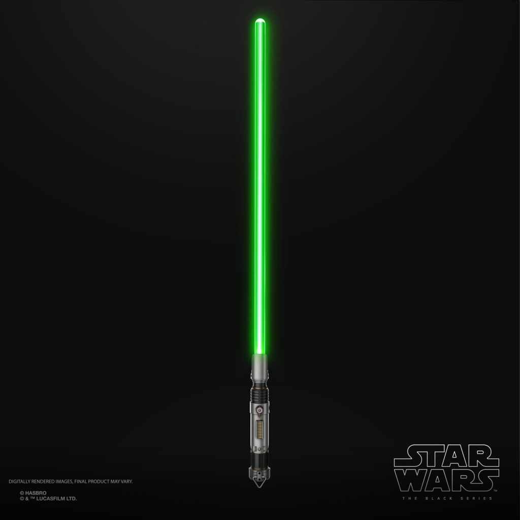 Die abnehmbare Klinge aus Kunststoff verfügt über die typische ausgetüftelte LED-Technik von Hasbro, die verschiedene Effekte wie die schrittweise Aktivierung, einen Blasterabwehr-Effekt oder einen Wandzerteilungseffekt möglich macht. Aktiviert werden die verschiedenen Modi per Knopfdruck am Griff, aus dem übrigens auch die passenden Sounds kommen.