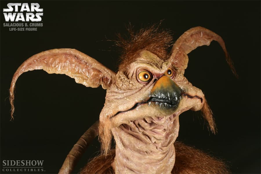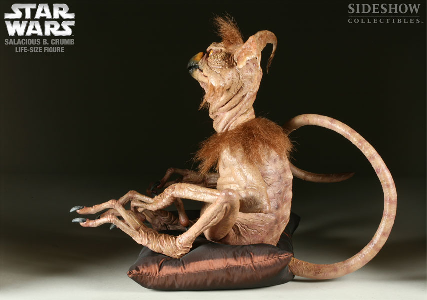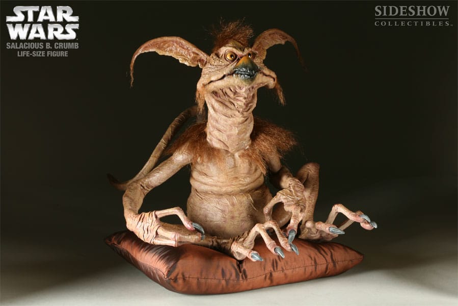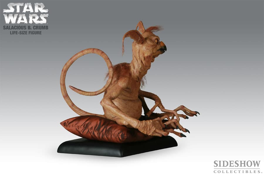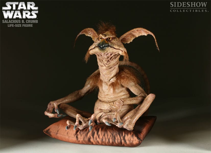 The Salacious B. Crumb Life-Size Figure perfectly captures Jabba’s malicious little ‚jester.‘ Sideshow Collectibles worked directly with famed FX Artist Tony McVey to create the sculpt for this product. Tony was the original sculptor of the Salacious Crumb character in Star Wars Episode VI – The Return of the Jedi. Cast in fiberglass and polystone, the figure is complete with a pillow and optional display base. Salacious is the perfect addition to any room, or the centerpiece of any collection, and his antics will be sure to impress any who come calling at your palace.