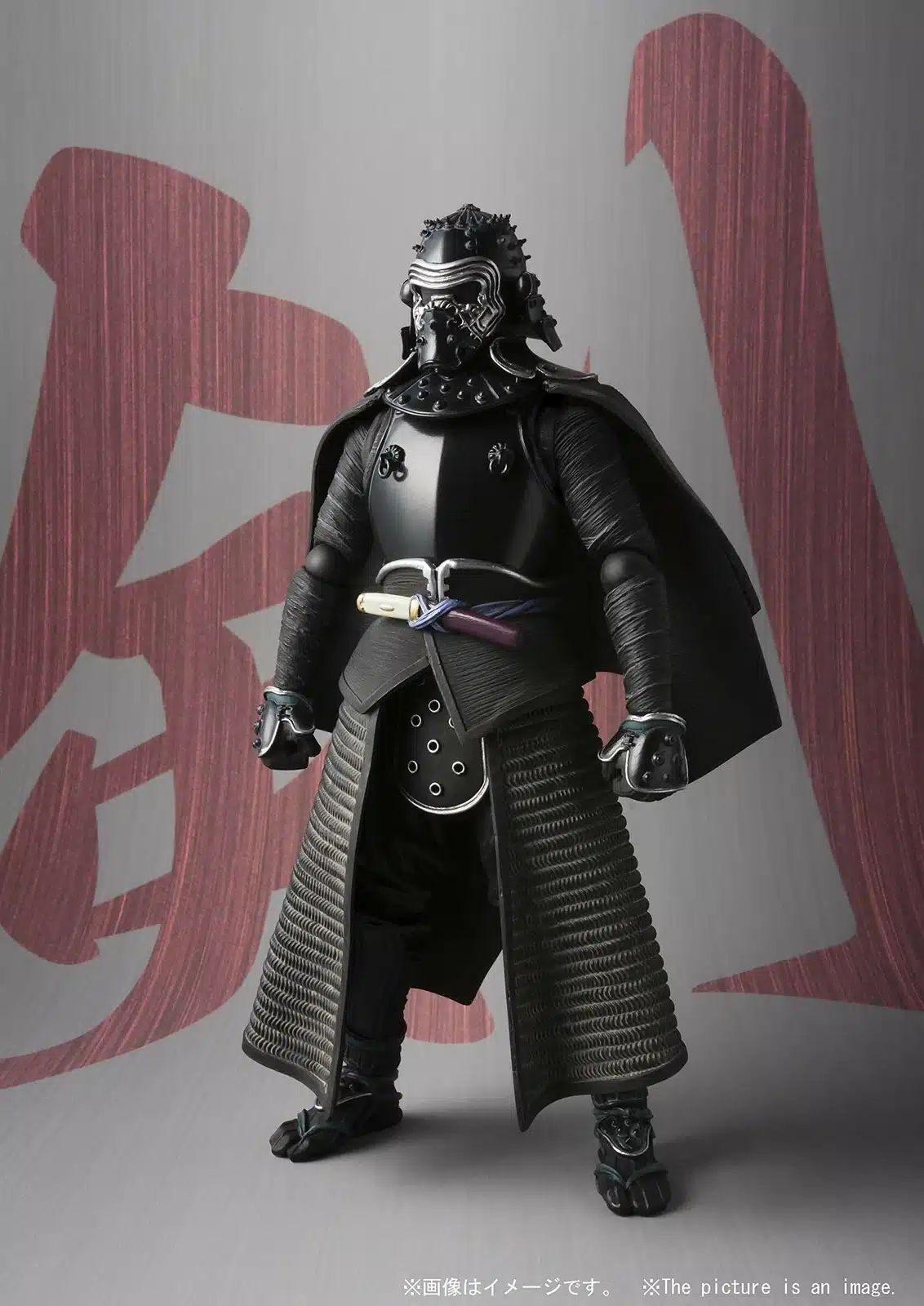 From Tamashii Nations. The Empire’s young warrior Kylo Ren, re-envisioned as a samurai in the Movie Realization series! His impressive cross-guard light saber has been re-envisioned as a sword, and his signature mask re-designed to capture the ancient world of the samurai. Add the Supreme Leader of the First Order to your collection of Meisho Movie Realization figures! The set includes two pairs of optional hands and a sword.