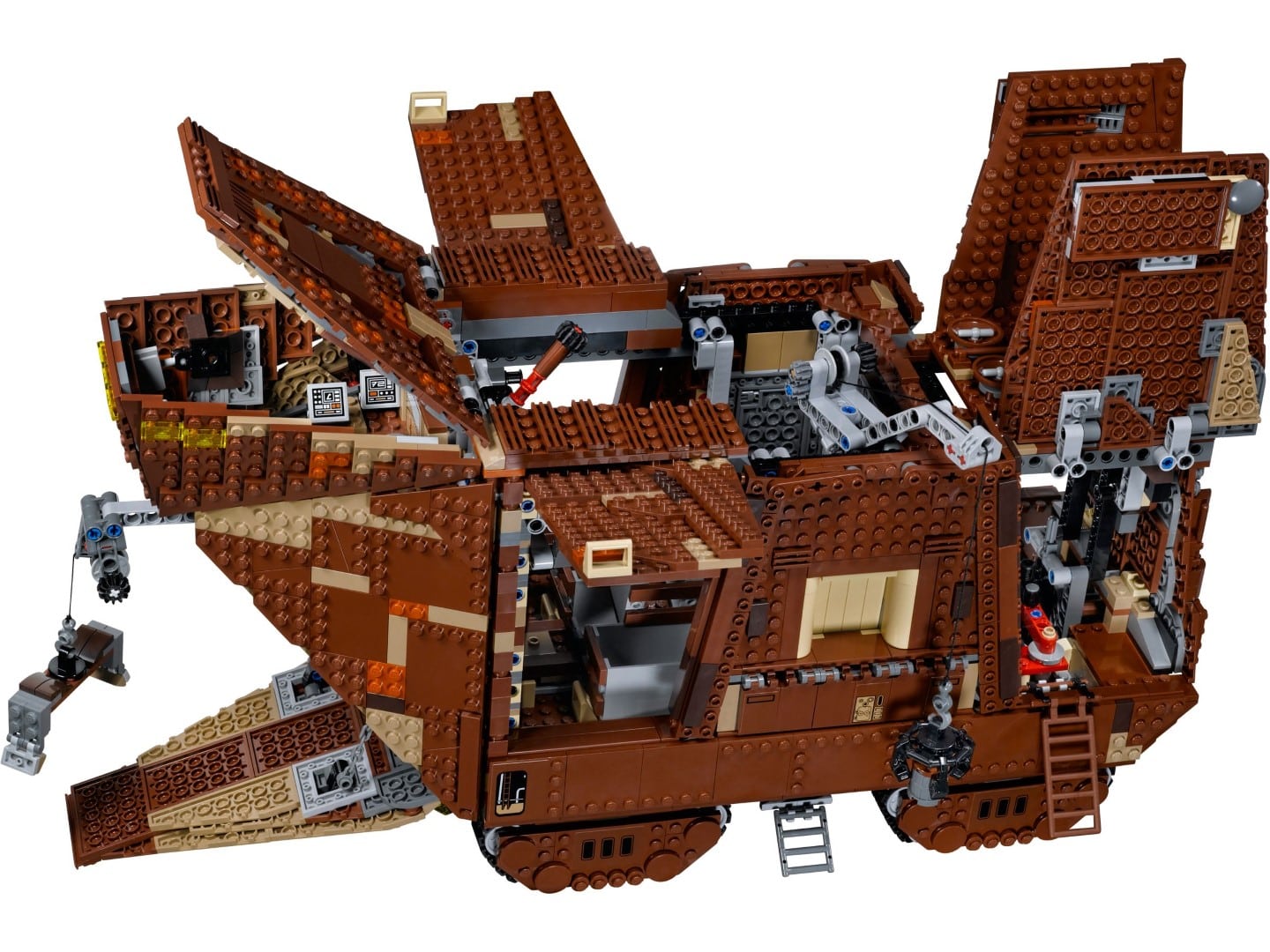 Der gewaltige LEGO® Star Wars™ Sandcrawler™ mit funktionstüchtigen Kränen, detailliertem Innenraum, 7 Minifiguren, 5 Droiden und vielem mehr schiebt sich durch die Wüste.