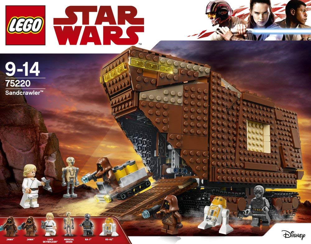 Mit dem LEGO® Star Wars Sandcrawler (75220) kannst du unvergessliche Szenen auf dem Wüstenplaneten nachstellen. Dieses fahrbare Zuhause der Jawas verfügt über ein aufklappbare Cockpit für 2 Minifiguren, lenkbare Laufketten und abnehmbare Seitenwände, hinter denen ein Droidengefängnis und ein Gelenkkran zum Einladen der Droiden zum Vorschein kommen. Die Frontrampe kann auch heruntergeklappt werden, um die Fracht oder das baubare Transportfahrzeug auszuladen. Kleine Händler werden große Freude daran haben, die Szenen aus „Star Wars: Eine neue Hoffnung“ nachzustellen, in denen Master Luke und die Jawas um Waren feilschen. Dieses actionreiche Abenteuer-Set enthält 4 LEGO Minifiguren und 2 Droiden.
