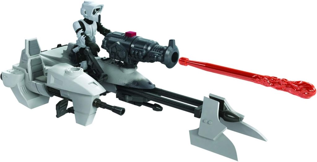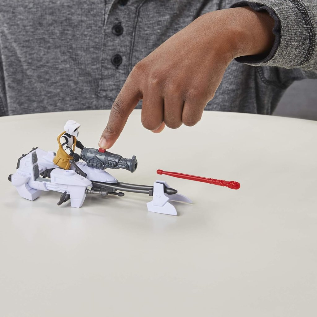 - SPEEDER-RENNEN: Jungs und Mädchen ab 4 Jahren werden es lieben, die Biker Scout Speederbike Speeder-Rennen Figur mit dem über einen abnehmbaren Beiwagen und einen beweglichen Projektilwerfer verfügenden Fahrzeug in Verfolgungsjagden zu schicken