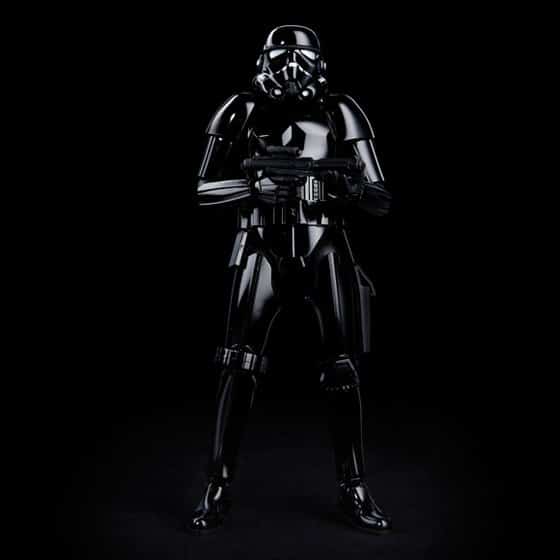 Die 147 hochwertigen Bauteile sind aus glänzend schwarzem Polystyrol/Polyethylen hergestellt, was ein Bemalen des Shadow Troopers unnötig macht.