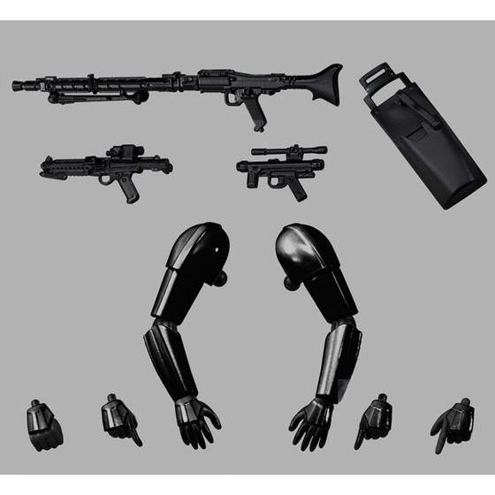 Der Bausatz enthält mehrere austauschbare Teile, darunter drei Paar Hände, drei Waffen (E-11 Blaster, DTL-19 Heavy Blaster Rifle, SE-14r short-range Combat Pistol), ein Pistolenholster sowie eine anreihbare Standplatte. Abgerundet wird das Set durch ein hochwertiges Decal-Sheet.