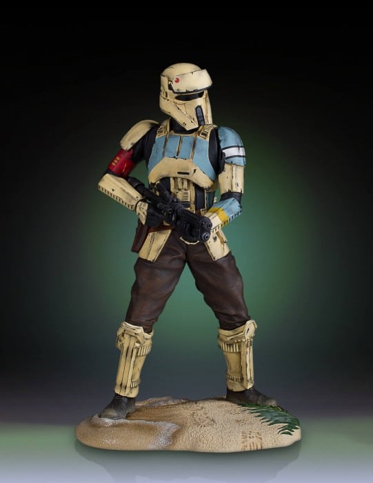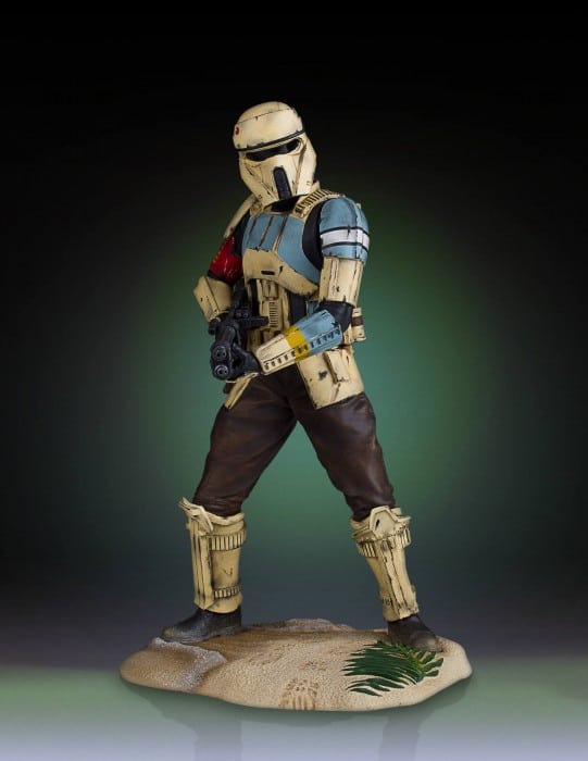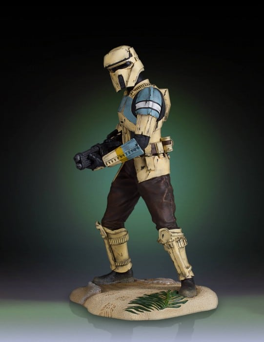 From Rogue One: A Star Wars Story come the Empire’s Shoretoopers. Armored soldiers who patrol the beaches of the planet Scarif, the secret location of the imperial army and its Death Star construction facility. These well-trained, specialist Troopers are at the ready to defend against the always imminent Rebel incursions. This Shoretrooper captain is armed with a heavy blaster and is depicted standing on the shores of Scarif, posed to take on the rebel insurgents. Sculpted digitally to ensure precision form and character correct accuracy. Each detailed bust is cast in durable, stone-like, poly-urethane material that is cold to the touch. Featuring a heavy blaster-rifle, sculpted hip pouches and gear. Every trooper is hand painted with correct rank and insignia applications with battle worn, weathered details. Each limited edition, hand-painted, polyresin classic bust comes individually numbered and is paired with a matching certificate of authenticity.