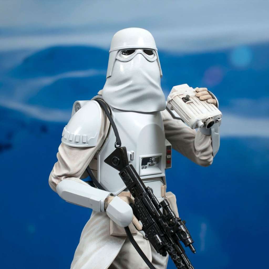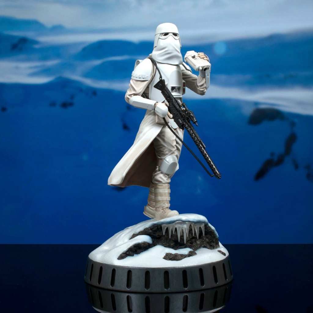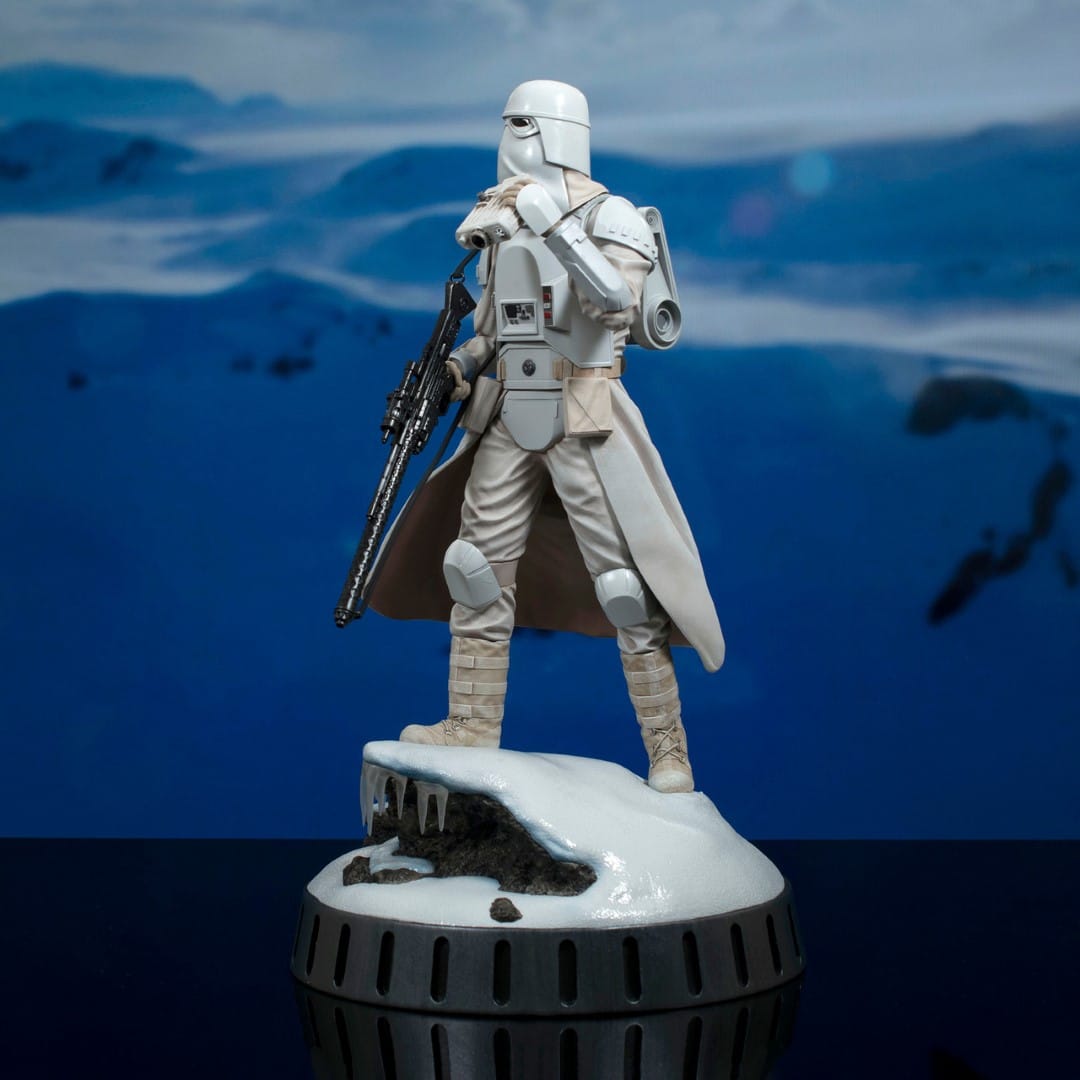 A Gentle Giant LTD release! The Snowtroopers are on the hunt for Rebels, and they may have found some! Standing on a snowy, rocky landscape, this 1/6 scale statue of an Imperial Snowtrooper holds a pair of binoculars in his hand and a rifle at his side, while the fabric of his uniform flaps in the wind. Measuring approximately 13 inches tall, this resin sculpture features detailed sculpting and paint applications. It is limited to only 1,000 pieces and comes packaged with a numbered certificate of authenticity in a full-color window box.