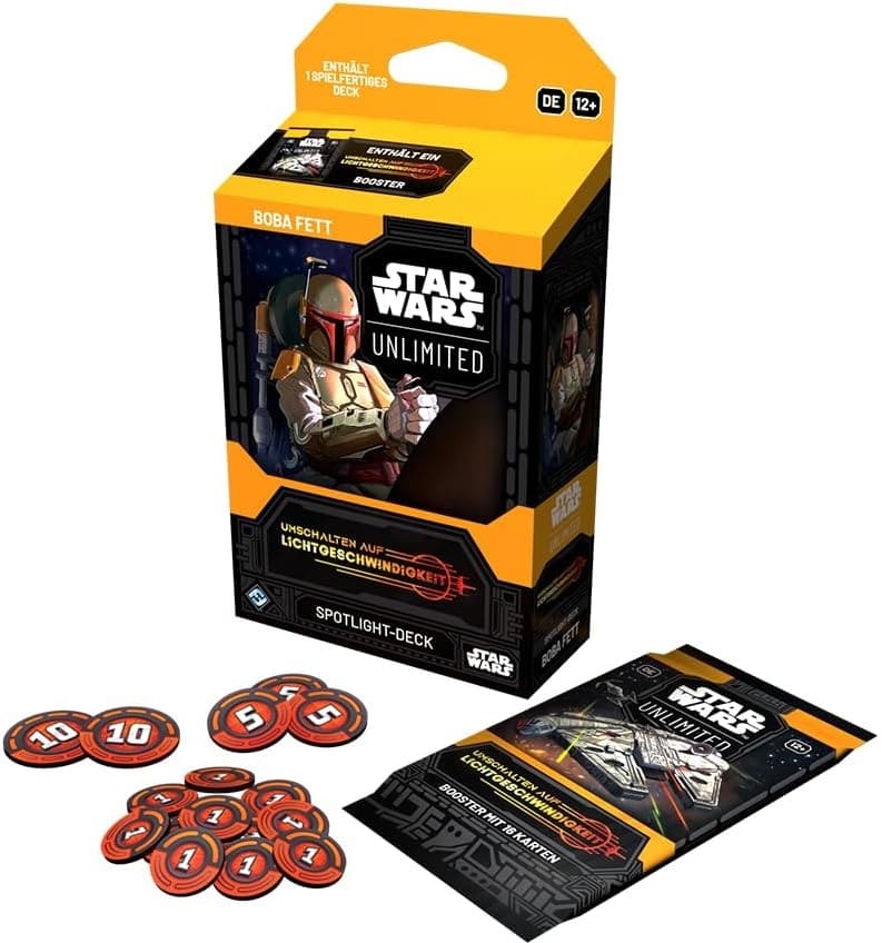 Ein Star Wars: Unlimited – Umschalten auf Lichtgeschwindigkeit – Spotlight-Deck: Boba Fett (deutsch) enthält: