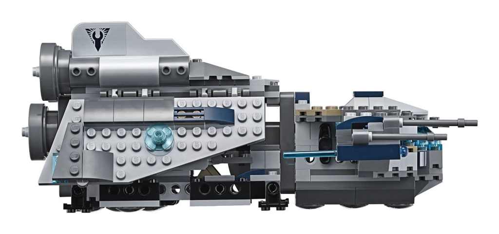 • Besitzt eine umkonfigurierbare Konstruktion aus Flügel-, Triebwerk- und Blaster-Modulen. Das Modell verfügt über 2 federunterstützte Shooter, ein ausklappbares Dachsegment und einen Mini-Weltraumkehrer mit Bergungsschaufel und Platz für eine Minifigur und einen Droid.