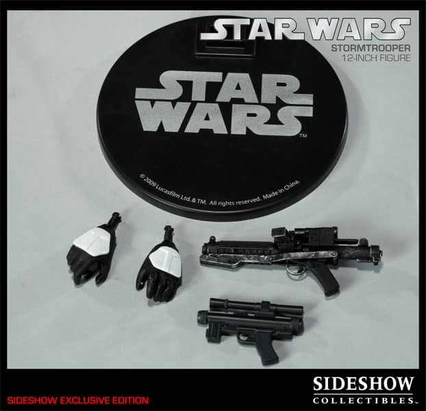 • Bodysuit, Fully detailed armor set with helmet and belt with holster, Thermal detonator with metal belt clip, Interchangeable hands, Stormtrooper blaster