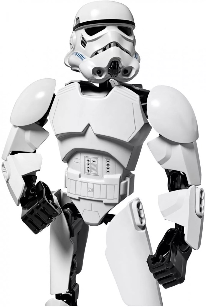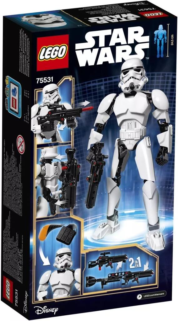 - Die baubare und äußerst bewegliche Figur des Stormtrooper Commander trägt auf dem Rücken einen schweren Blaster mit federunterstütztem Shooter und hat eine Schulterplatte mit abnehmbaren Munitionstaschen.