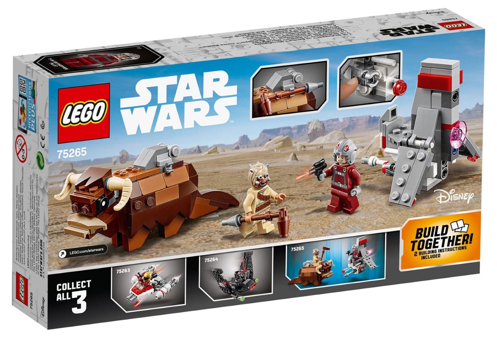 Mit dem Raumschiff aus dem Bau- und Spielset „T-16 Skyhopper™ vs Bantha™ Microfighters“ (75265) lernen Kinder das LEGO® Star Wars™ Universum kennen. Die beiden Bauspielzeuge nach den Vorbildern aus „Star Wars: Eine neue Hoffnung“ – ein Bantha und ein Skyhopper – lassen sich einfach bauen, damit der Spielspaß rasch beginnen kann. Kinder können mit diesem Set wunderbar allein oder zusammen mit Freunden spielen und sich mit dem Skyhopper-Piloten oder dem Tusken-Räuber auf dem Bantha ins Actiongetümmel stürzen. Die digitalen Instructions PLUS erleichtern als interaktive Bauanleitung das Bauen dieses beliebten Star Wars Bauspielzeugs zum Sammeln. Diese in der kostenlosen LEGO Life App verfügbare Bauanleitung enthält Funktionen zum Vergrößern und Drehen der digitalen Modellansicht, damit auch jüngere Kinder die Modelle aus LEGO Steinen selbstständig bauen können.