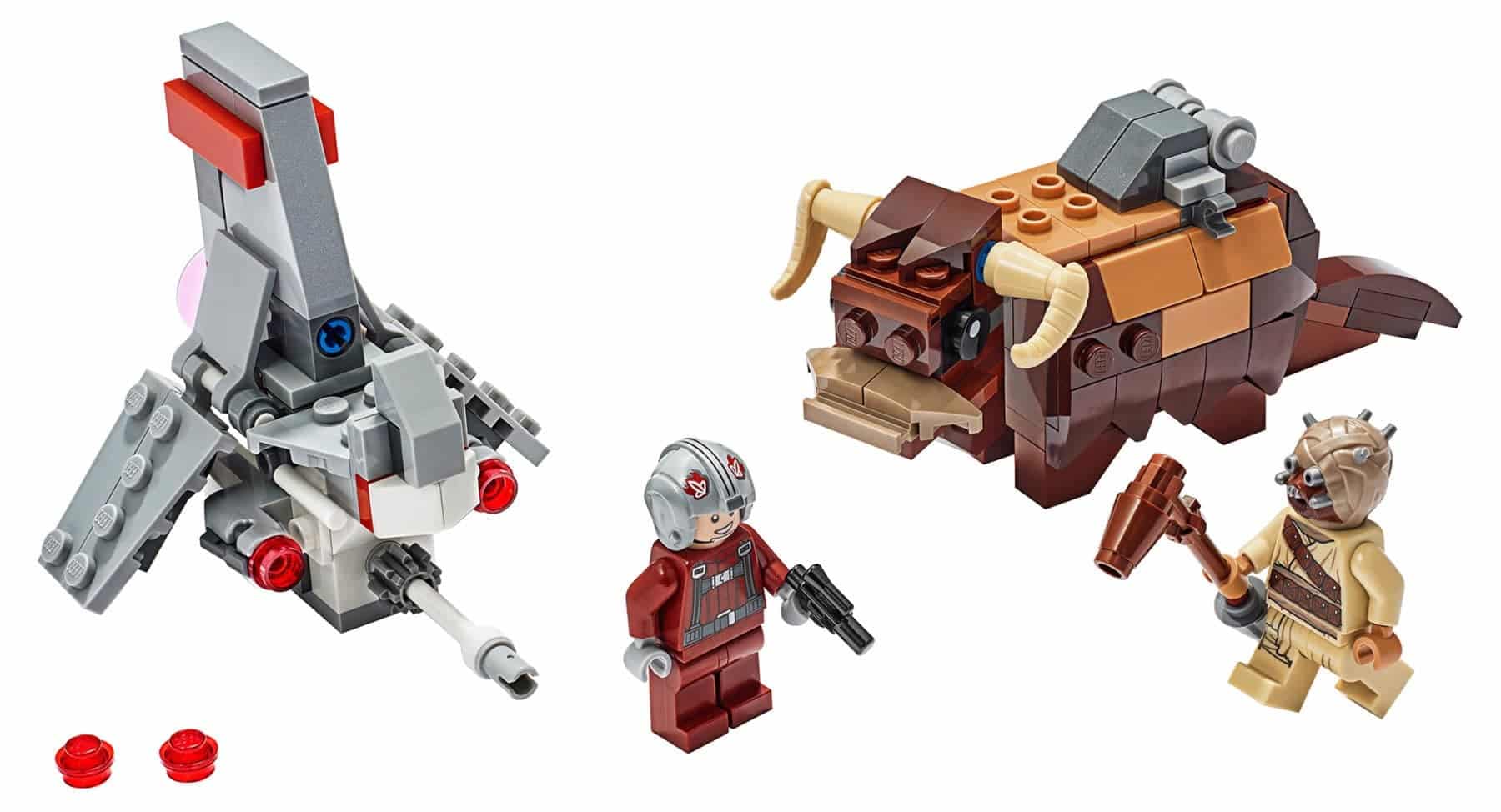 • Der T-16 Skyhopper verfügt über 2 Shooter und einen Sitz für die Piloten-Minifigur. Die bewegliche Star Wars™ Bantha-Figur trägt dagegen einen Sattel für den Tusken-Räuber sowie einen Halter für den Bantha-Stab, um Kinder zu actionreichem Spielspaß zu inspirieren.