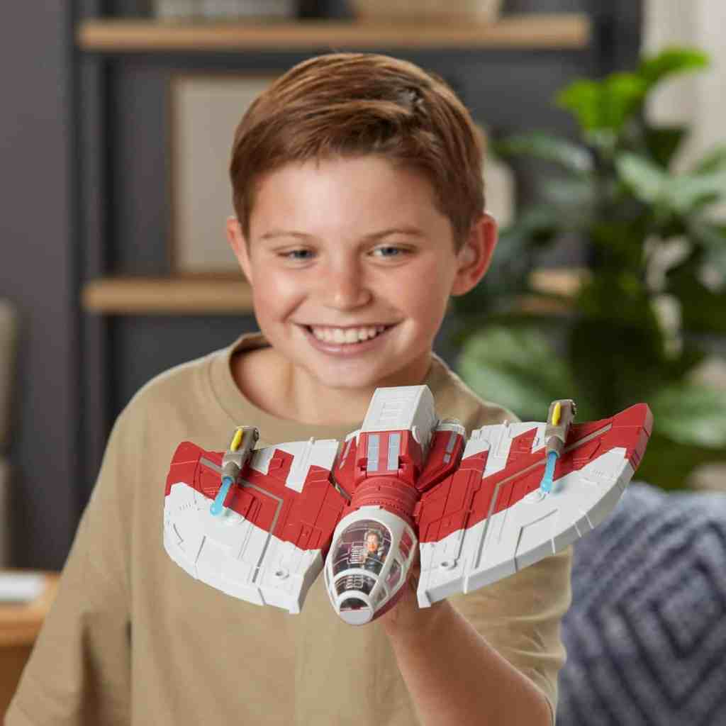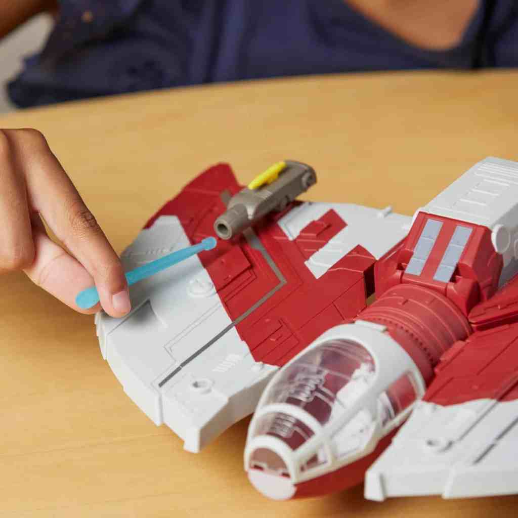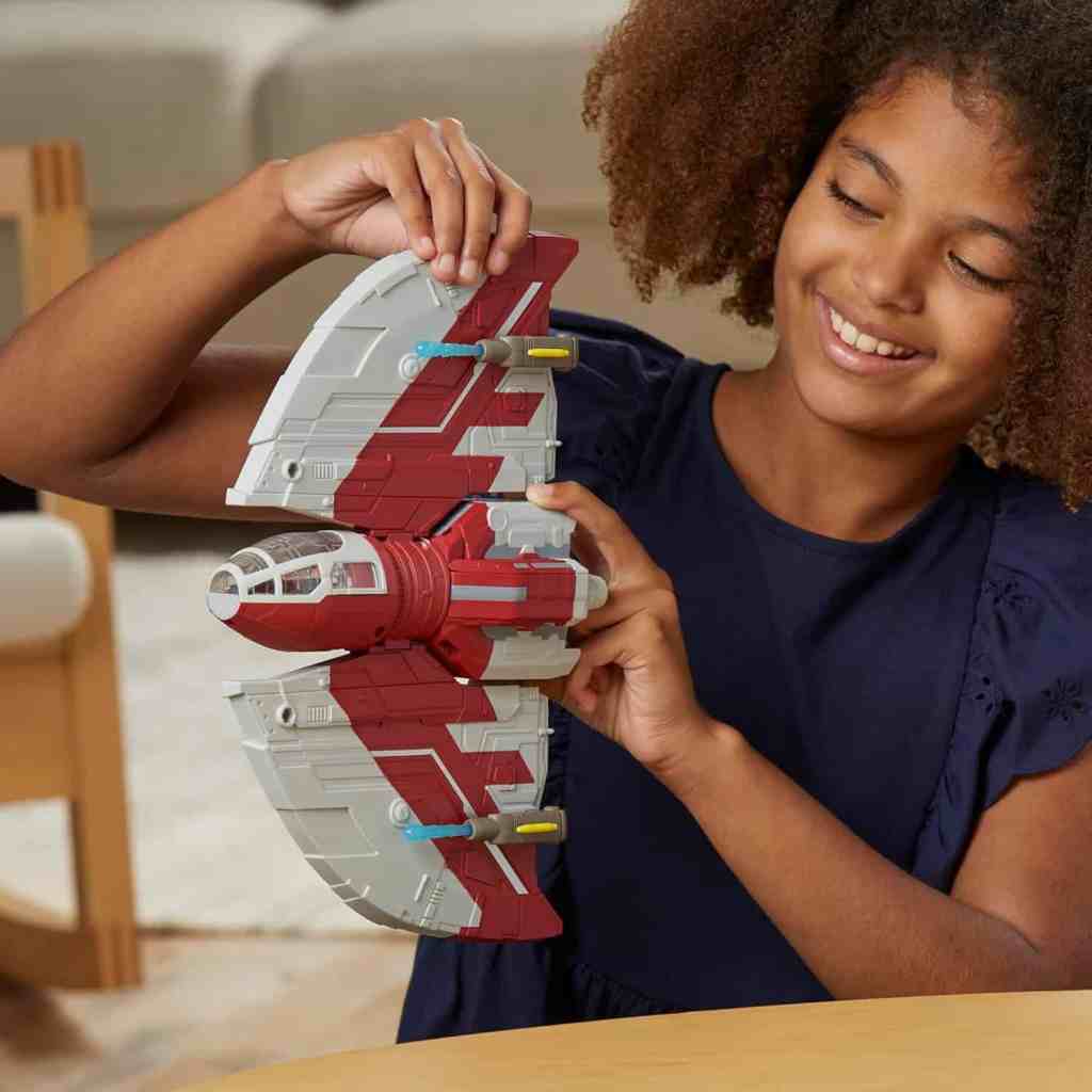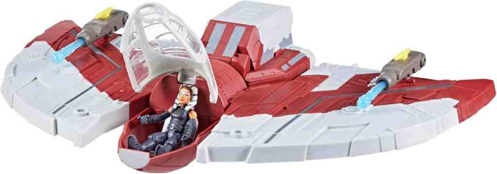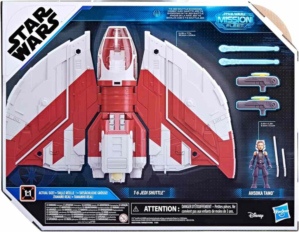 - STAR WARS SCHIFF: Kinder können ihre Lieblingsmomente von Ahsoka mit diesem epischen Star Wars-Fahrzeug neu erfinden. Ahsokas T-6 Jedi-Shuttle ist 30,2 cm breit, enthält ein Cockpit und verfügt über repositionierbare Flügel
