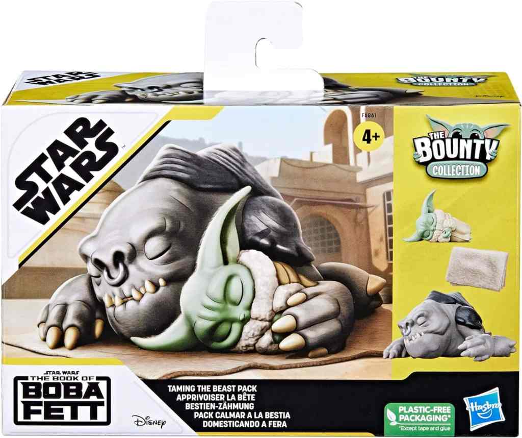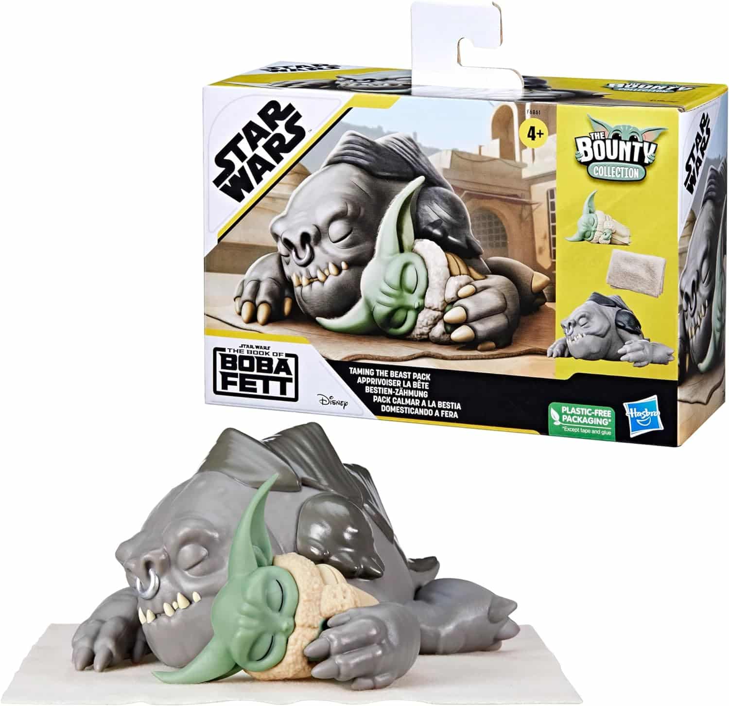 • GROGU & RANCOR: From Hasbro’s Star Wars The Bounty Collection comes the Taming the Beast pack, featuring a sleeping rancor and Grogu, affectionately referred to by fans as „Baby Yoda“