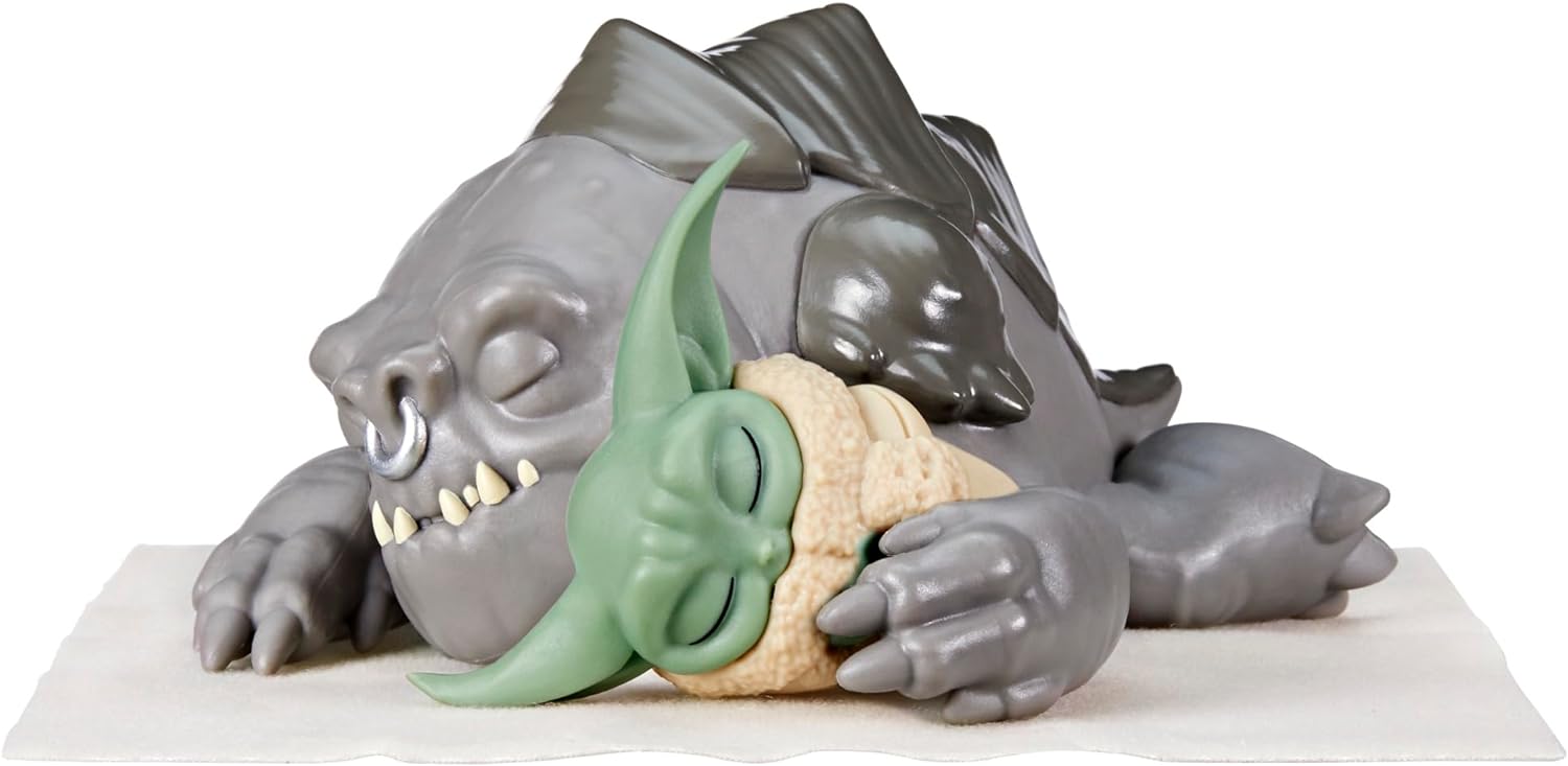 Für die Star Wars Bounty Collection von Hasbro ist bei Amazon US gestern ein bisher unbekanntes Set mit Grogu und einem Rancor aufgetaucht. Beide liegen schlafend nebeneinander auf einer kleinen Decke aus Stoff.