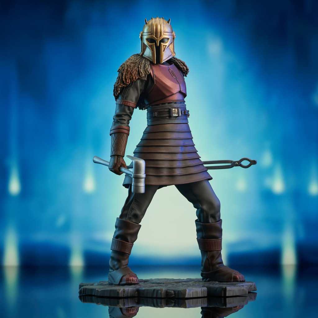 A Gentle Giant LTD release! This is the Way! The Mandalorian Armorer, worker of beskar and wielder of a deadly set of hammer and tongs, is now the newest Premier Collection statue from Gentle Giant LTD! Standing approximately 10 inches tall atop a diorama base, this statue features detailed sculpting and paint applications. Limited to only 3,000 pieces, it comes packaged in a full-color box with a numbered certificate of authenticity.