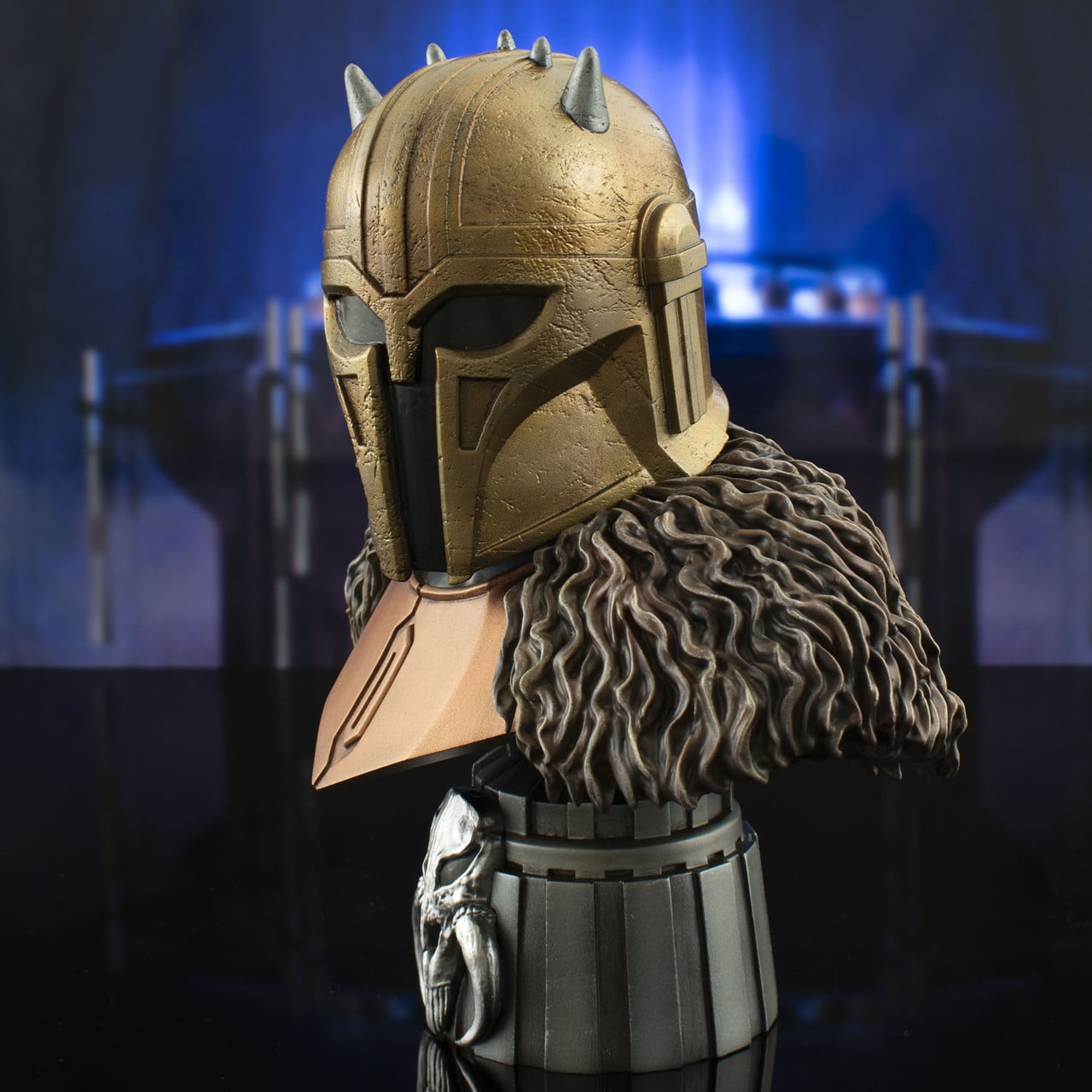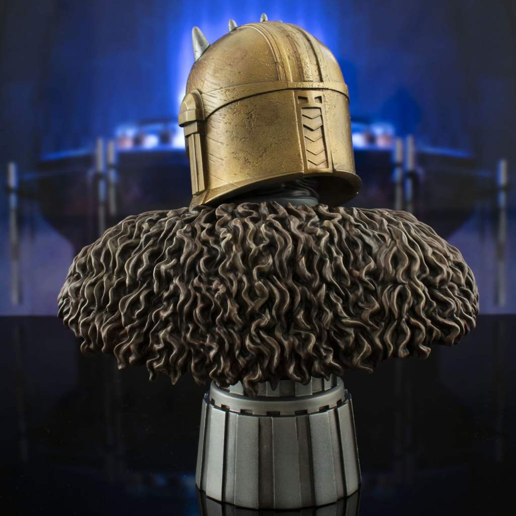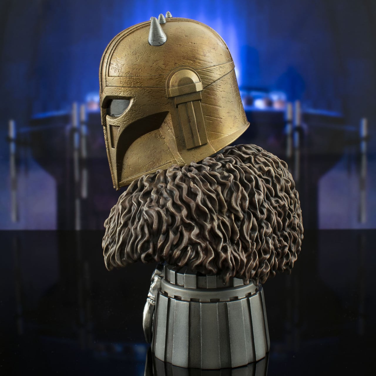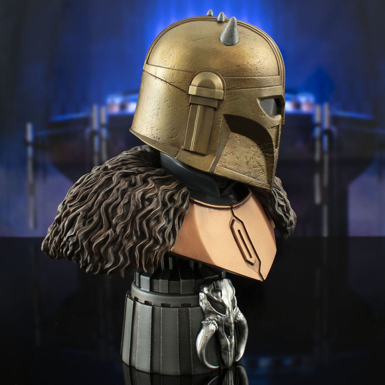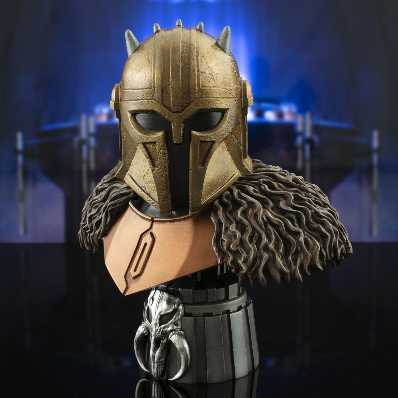 A Gentle Giant LTD release! She’s a legend among the Mandalorians, and now she’s a Legend in 3-D! The Armorer, spiritual leader of Din Djarin’s sect, is the latest Star Wars character to be made into a 1/2-scale Legends in 3-Dimensions bust. She sits head and shoulders atop a forge-inspired base, with a mythosaur skull on the front, and features detailed sculpting and paint applications. Limited to only 1,000 pieces, it comes packaged in a full-color box with a numbered certificate of authenticity.
