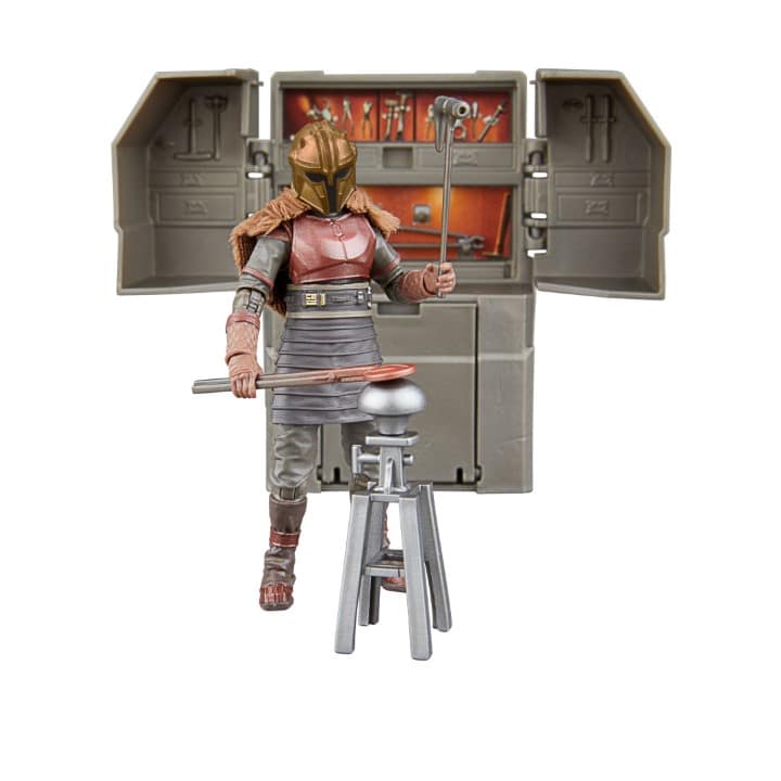 The Armorer keeps vital Mandalorian traditions alive, even if her people must remain hidden to survive. Inspired by the action-packed episode from the STAR WARS: THE MANDALORIAN live-action series on Disney+, this 3.75-inch scale playset with the Armorer (Lakeside Covert World) figure (VC # 331) makes a great addition to any fan’s collection. Comes with several accessories ideal for play and display, like the Armorer’s forging materials and a selection of her finished helmets – plus a Grogu figure! These collectibles feature premium detail and design across product and packaging, as well as collector-grade deco that fans have come to know and love.