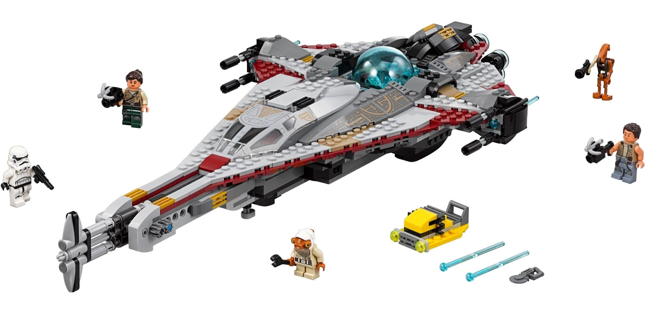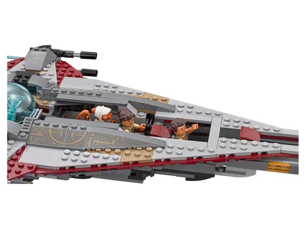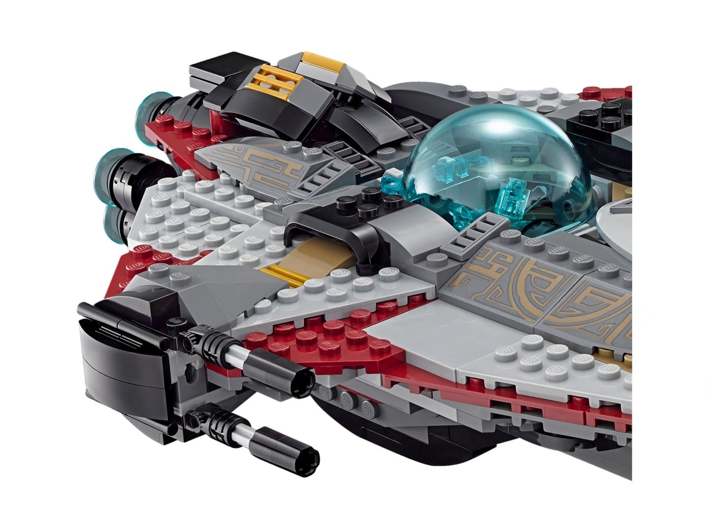 Spiele mit The Arrowhead gefährliche Missionen aus „LEGO® Star Wars: The Freemaker Adventures“ nach. Dieses eindrucksvolle Raumschiff verfügt über ein abnehmbares Cockpitdach, unter dem drei Minifiguren und R0-GR Platz haben, eine aufklappbare durchsichtige Kuppel, die den herausnehmbaren Antriebskristall des Raumschiffs beherbergt, zwei federunterstützte Shooter und einen megastarken Rammbock zum Ausklappen. Es gibt auch einen Servicewagen mit Werkzeug und Munition, der den Einstieg ins Spielen erleichtert.