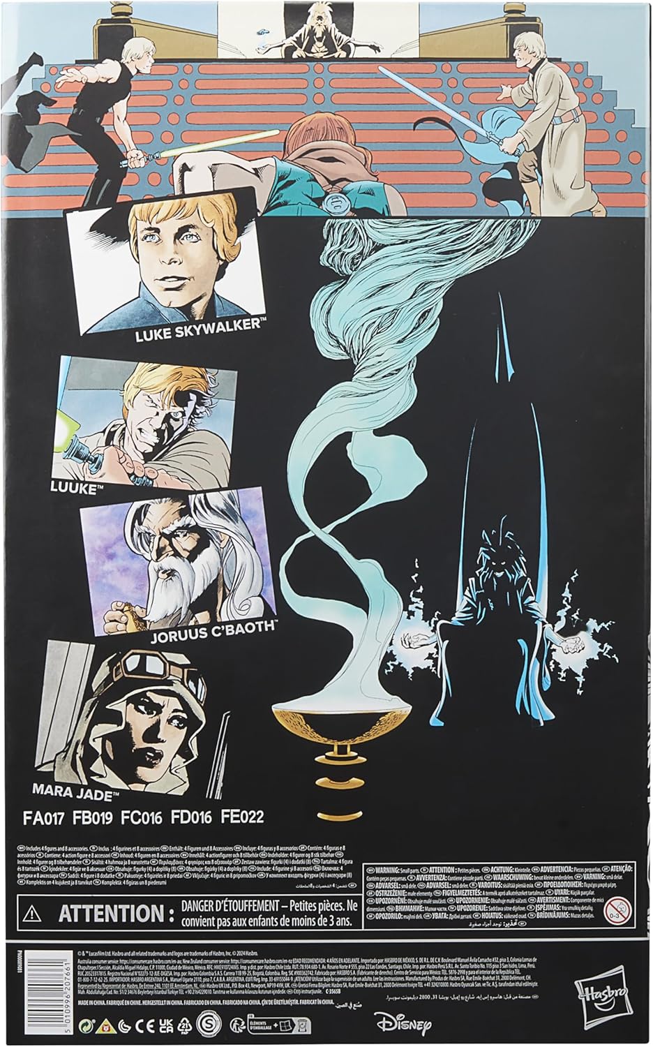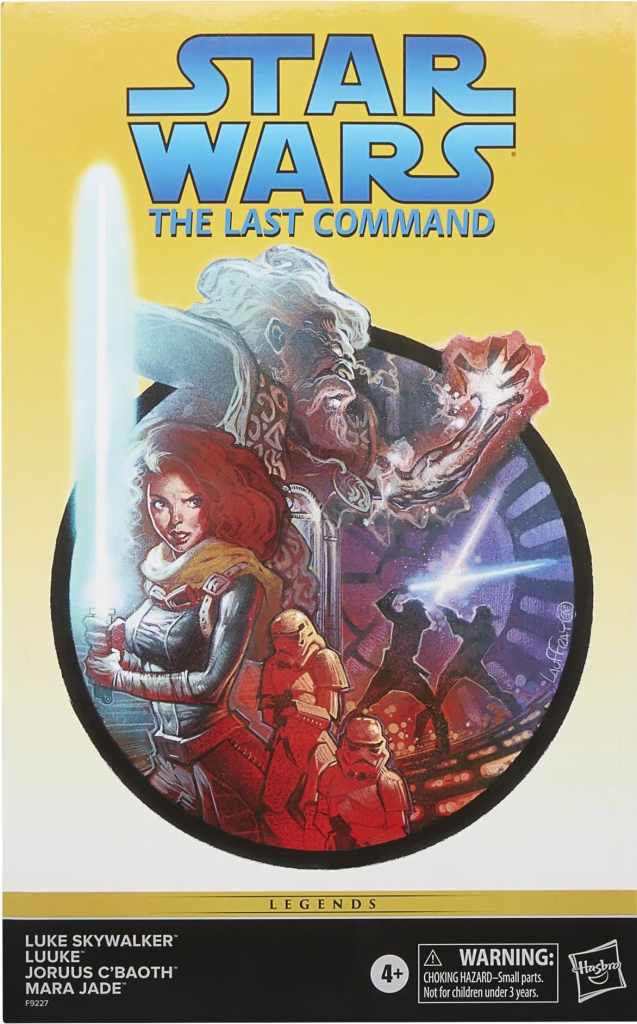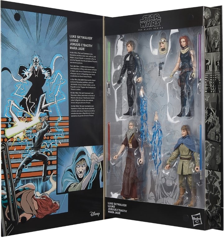 STAR WARS  fans and collectors can imagine scenes from the STAR WARS galaxy with this premium 6-inch STAR WARS: THE BLACK SERIES STAR WARS: THE LAST COMMAND 4-pack, inspired by the characters’ appearances in the STAR WARS: THE LAST COMMAND comic books. Luke Skywalker and Mara Jade must confront Joruus C’baoth in a last ditch effort to save the Republic from Grand Admiral Thrawn’s overwhelming forces. The characters included in the pack include Luke Skywalker, Luuke, Joruus C’baoth and Mara Jade. Fans and collectors can display these fully articulated figures featuring premium detail and multiple points of articulation in their collection. Includes 4 figures and 8 comics-inspired accessories including 4 Lightsabers, 2 lightning hands for Joruus C’baoth and an alternate head and blaster for Mara Jade.